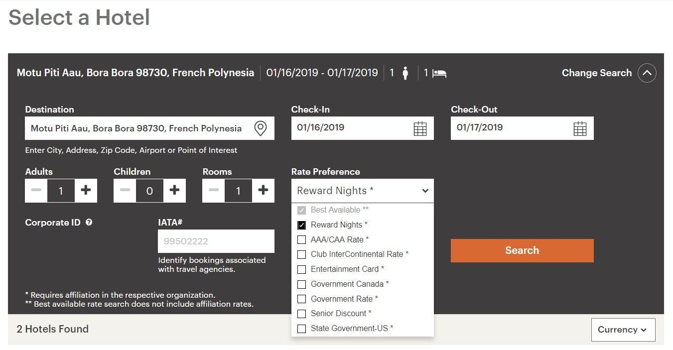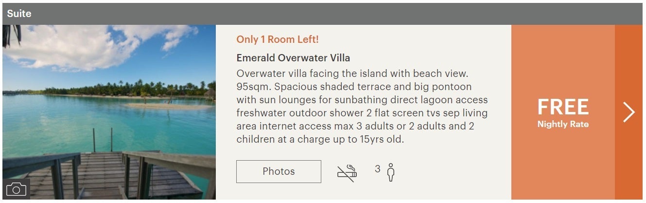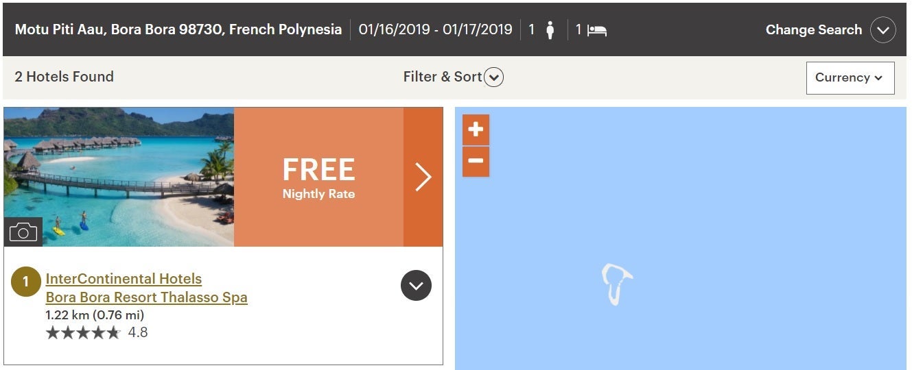 And when I searched the same date at that same IC Bora Bora Thalasso, the night was free.