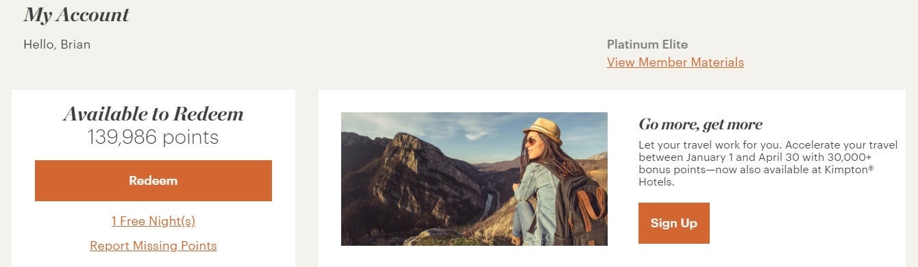 However, when I performed the same search for an anniversary night, I saw something different. To do this, I went into my account and clicked "Redeem" on the free night.