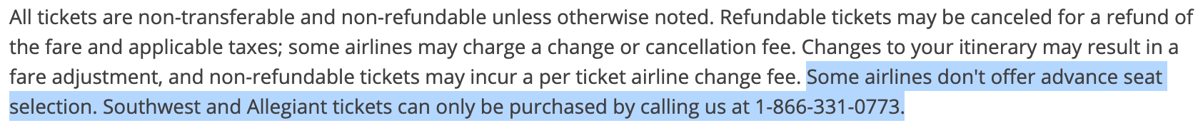 The only major exceptions are Allegiant and Southwest, which, according to Chase, must be booked over the phone.