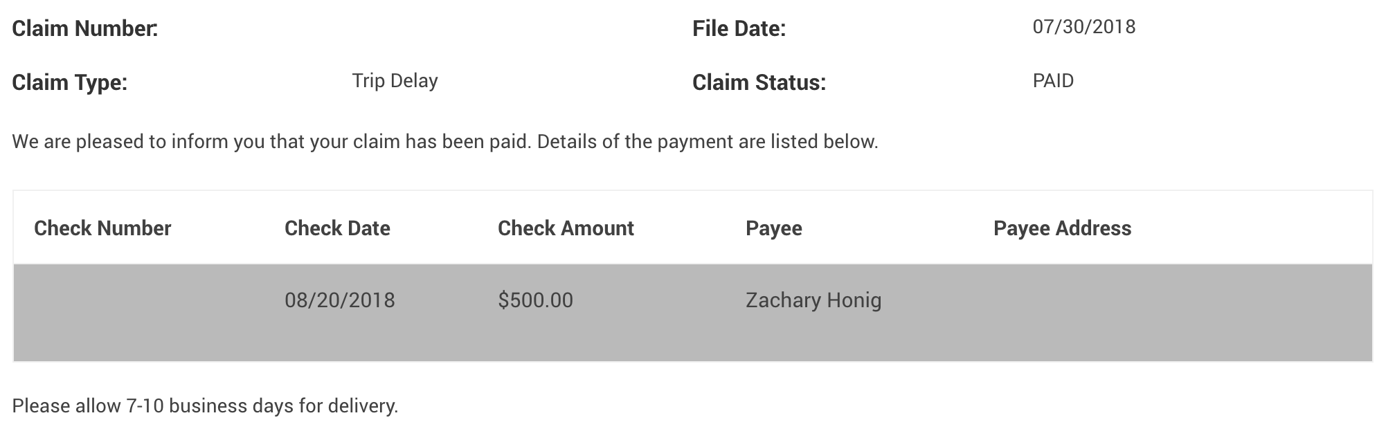 Uber receipt, flight rebooking and other documentation in hand, I filed a claim online after we returned from Boston. The process took about 10 minutes, but there were numerous follow ups via email, with a claims processor asking for documentation I had already provided, including the itinerary and Uber receipt. Ultimately, the claim was approved, though, with one caveat.