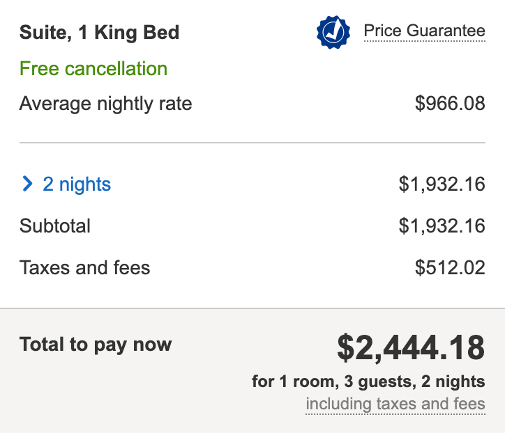 And using Chase points directly through the Ultimate Rewards portal? That would've been a cool 64,405 points per night excluding taxes and fees — which would've boosted the nightly rate to over 81,000 points.