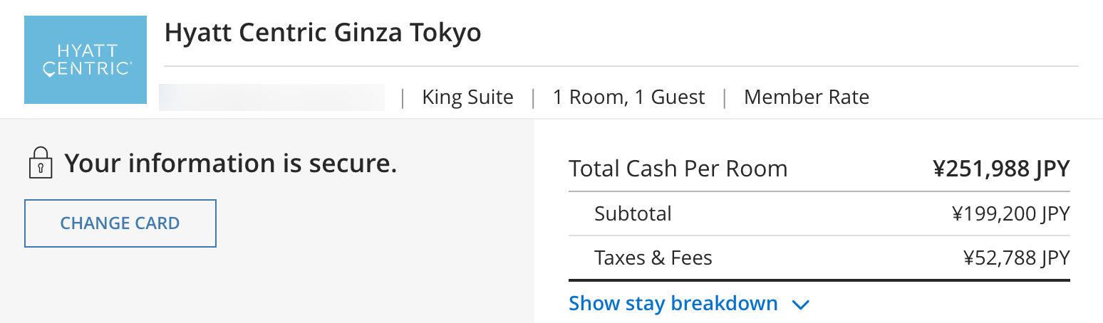 Here's why we promote transferable points so frequently here at The Points Guy. If I had booked a paid, member rate directly with Hyatt, that two-night stay would've set me back ¥251,988 (or ~$2,390.19 based on current exchange rates).