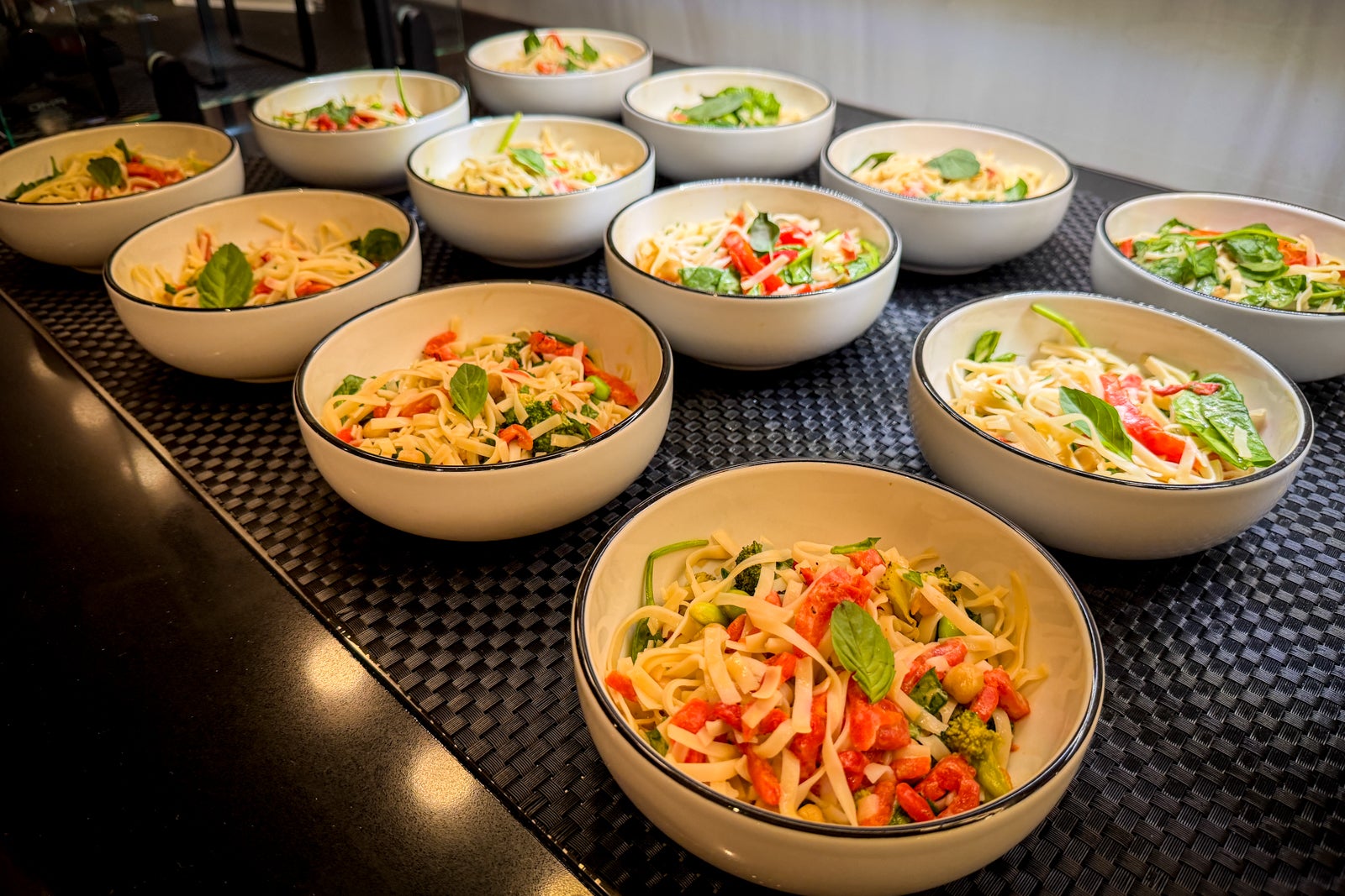Come hungry and leave full and happy courtesy of goodies such as Momofuku's famous pork bun, crispy nori potatoes and a spicy cucumber salad. If you've visited other Chase Sapphire lounges, you may also recognize signature dishes such as the Sapphire noodles with broccoli, edamame, chickpeas and peppers.