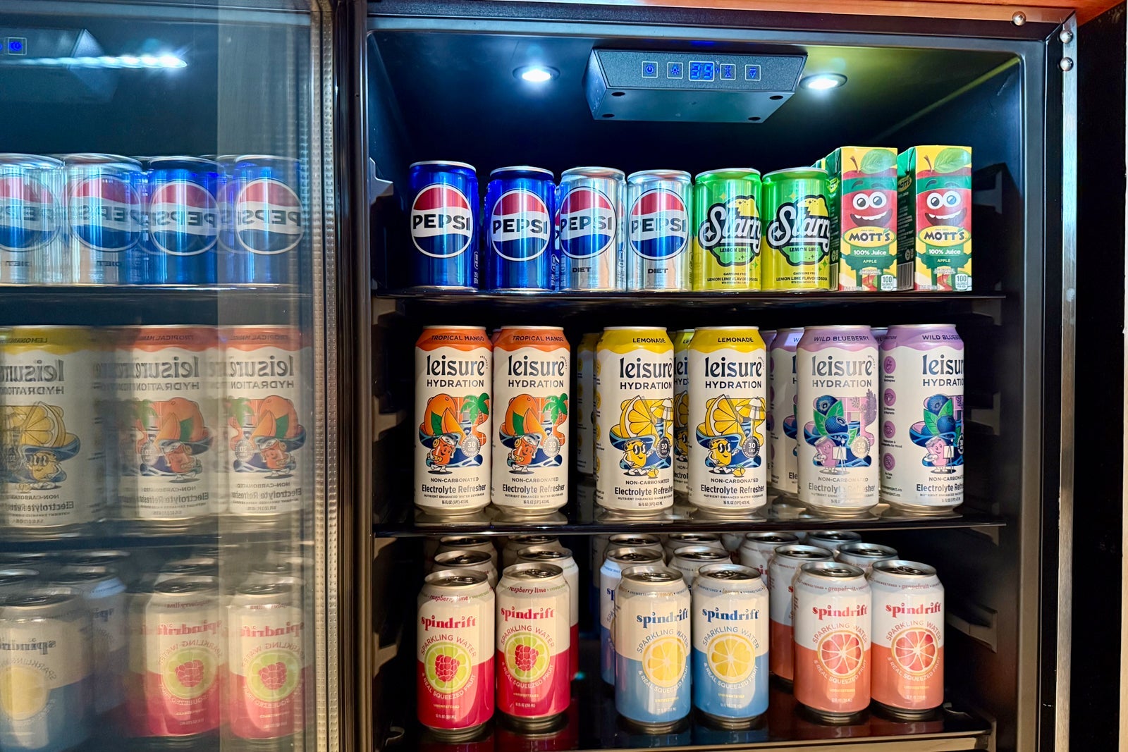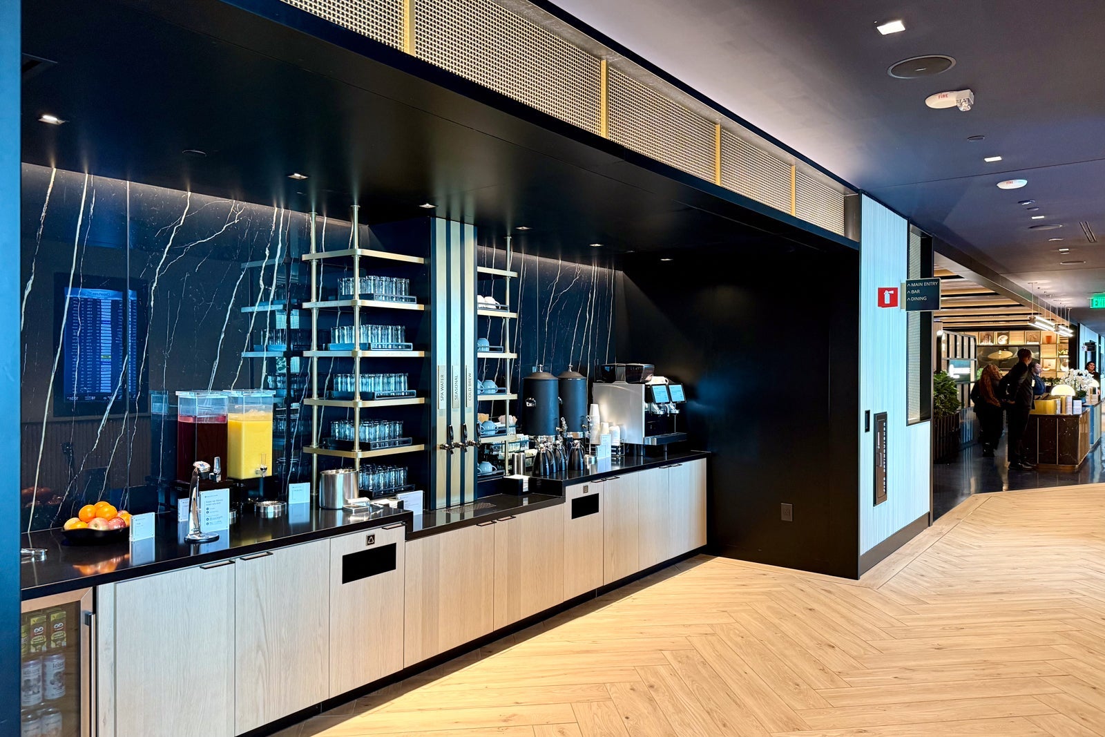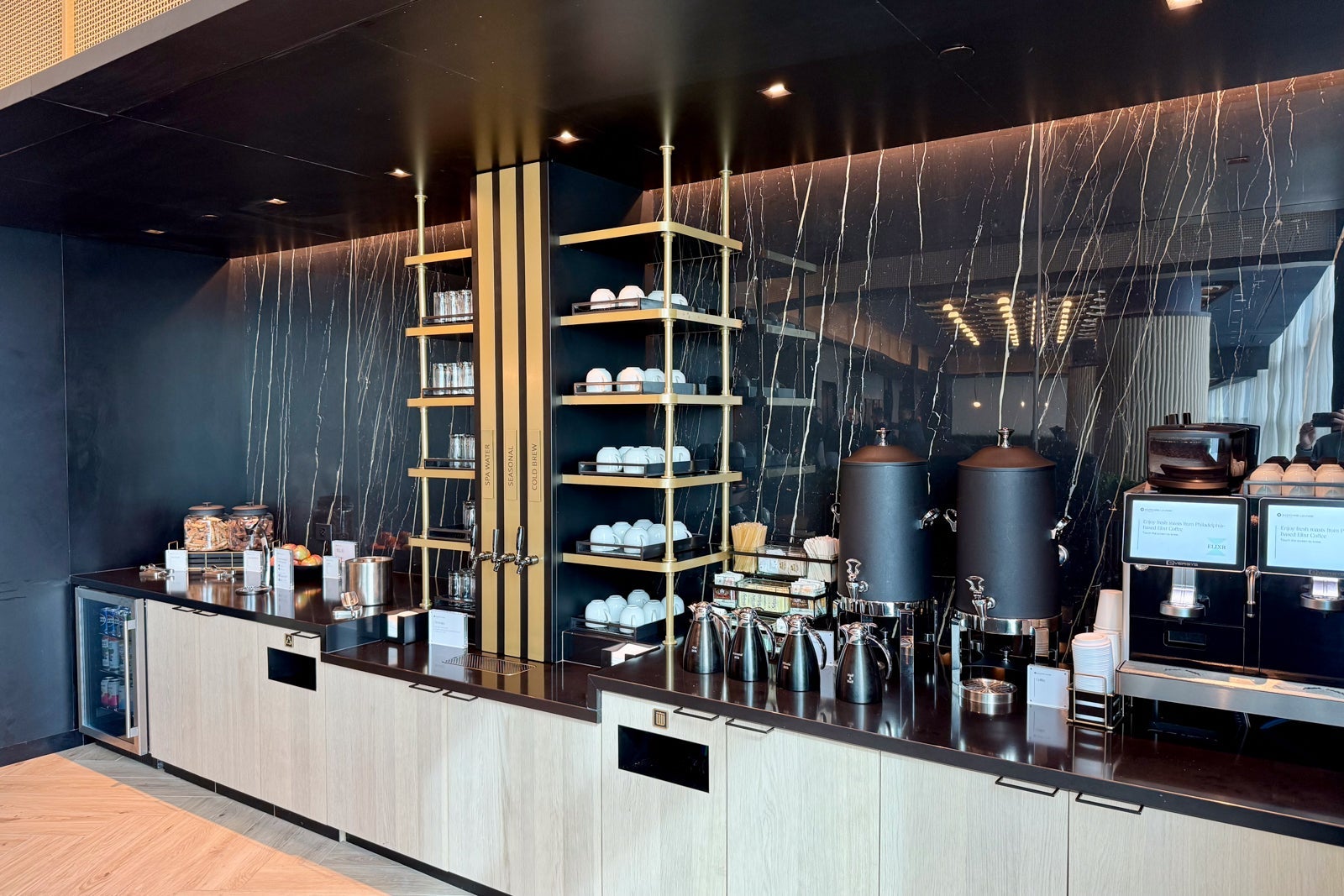 Nonalcoholic drinks are available at two beverage stations throughout the lounge. There are fridges stocked with cans of Spindrift and Leisure Hydration, and the coffee machines use brew from Elixr, one of Philly's top-rated coffee shops.