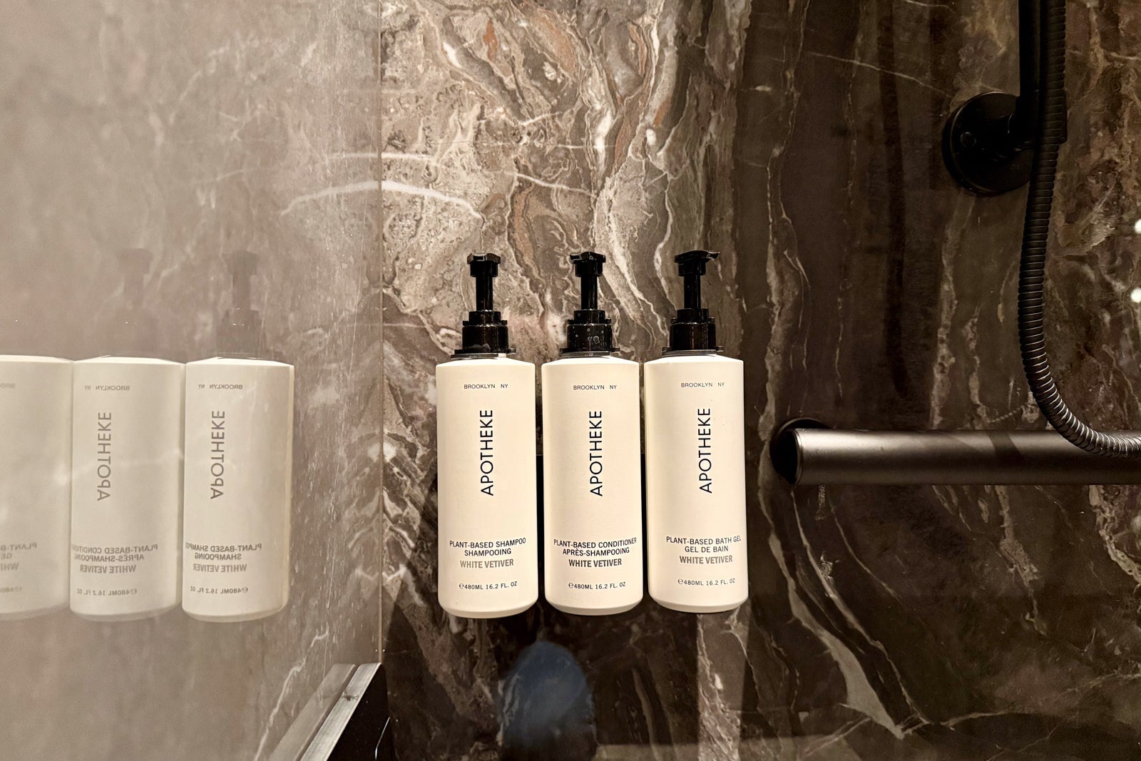 There are also two shower suites featuring Apotheke products, Dyson hair dryers and last-minute essentials like dental and shaving kits.