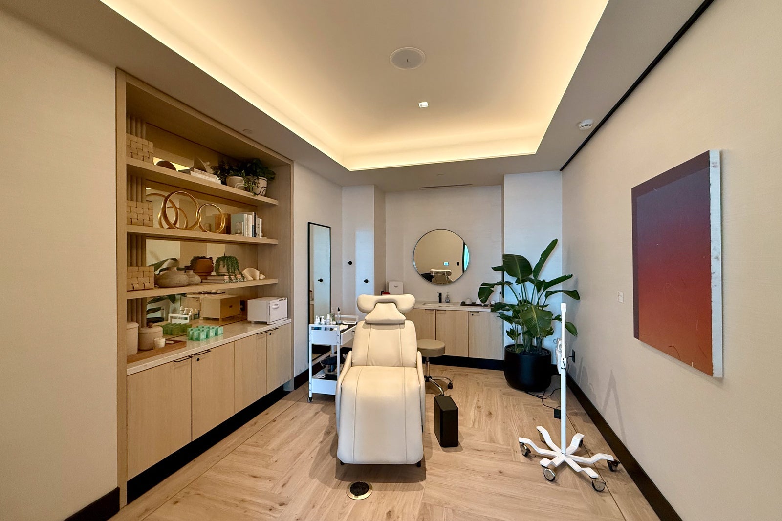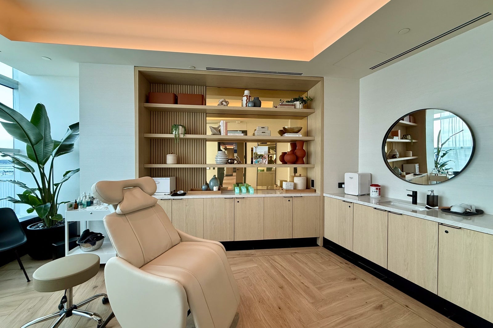 It starts with a comprehensive wellness center, located in a partitioned area to the left of the lounge.