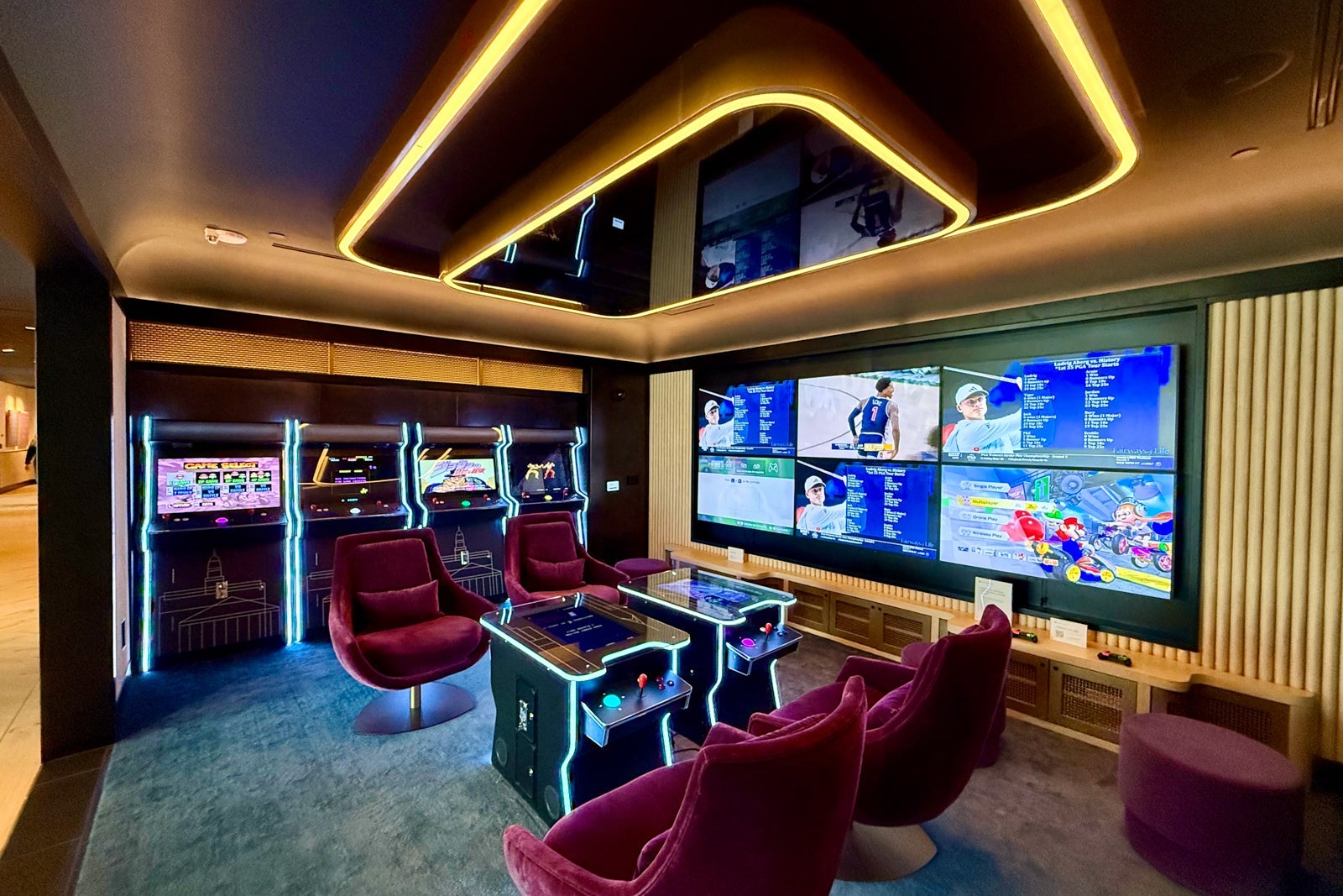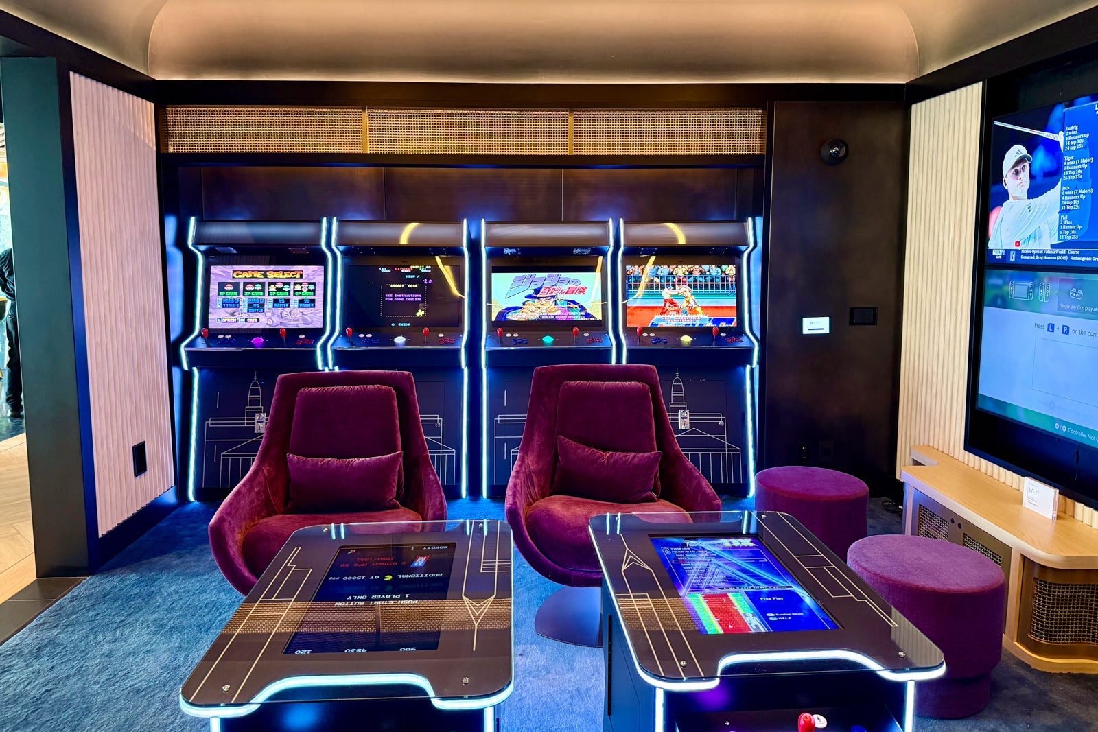 The first is the game and memorabilia room, which features a variety of retro arcade games and a multiscreen wall for additional gaming experiences or for watching your favorite sports team. (I wouldn't recommend asking the concierge to watch New York Giants games here.)