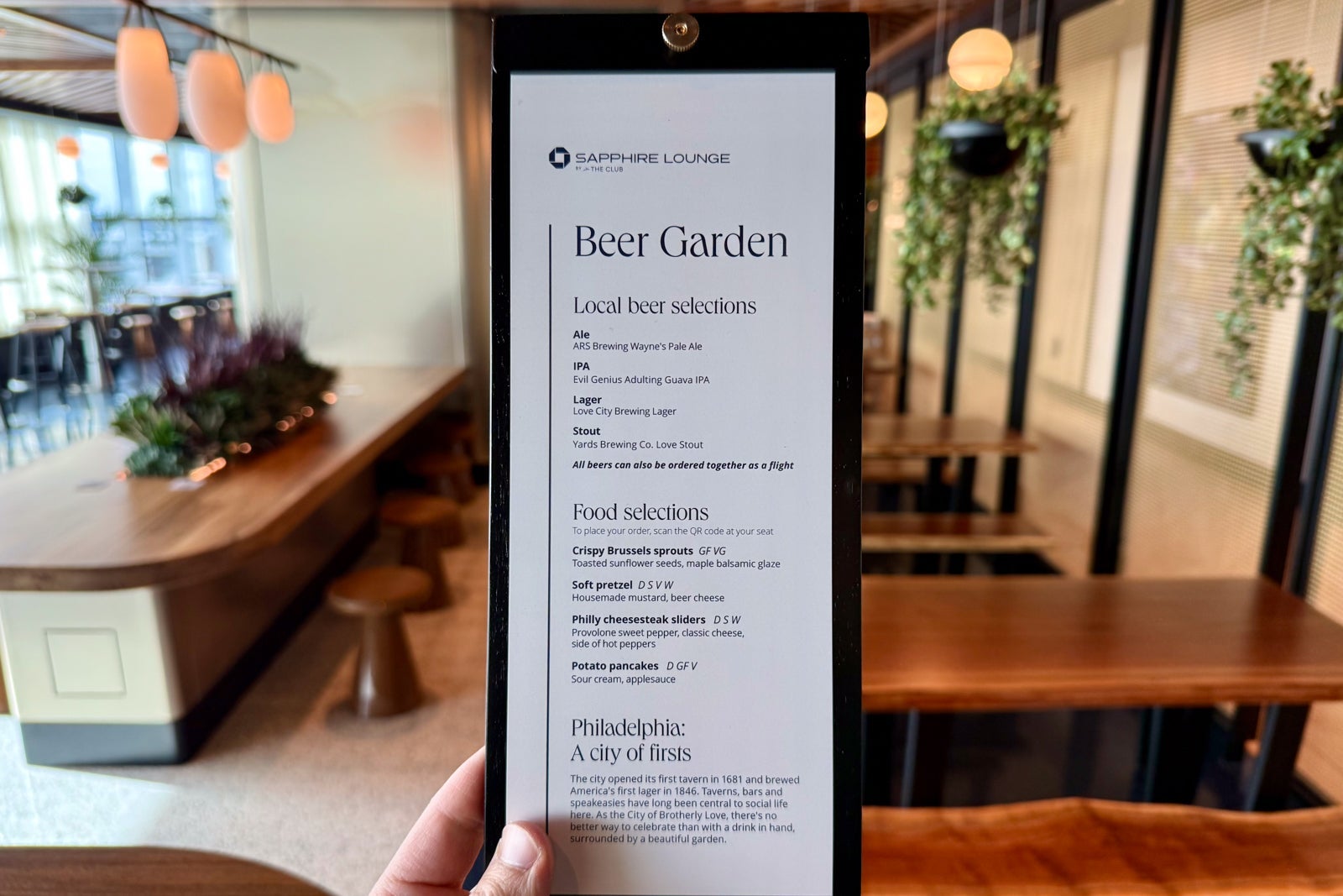 Chase Sapphire Lounge Philadelphia amenities