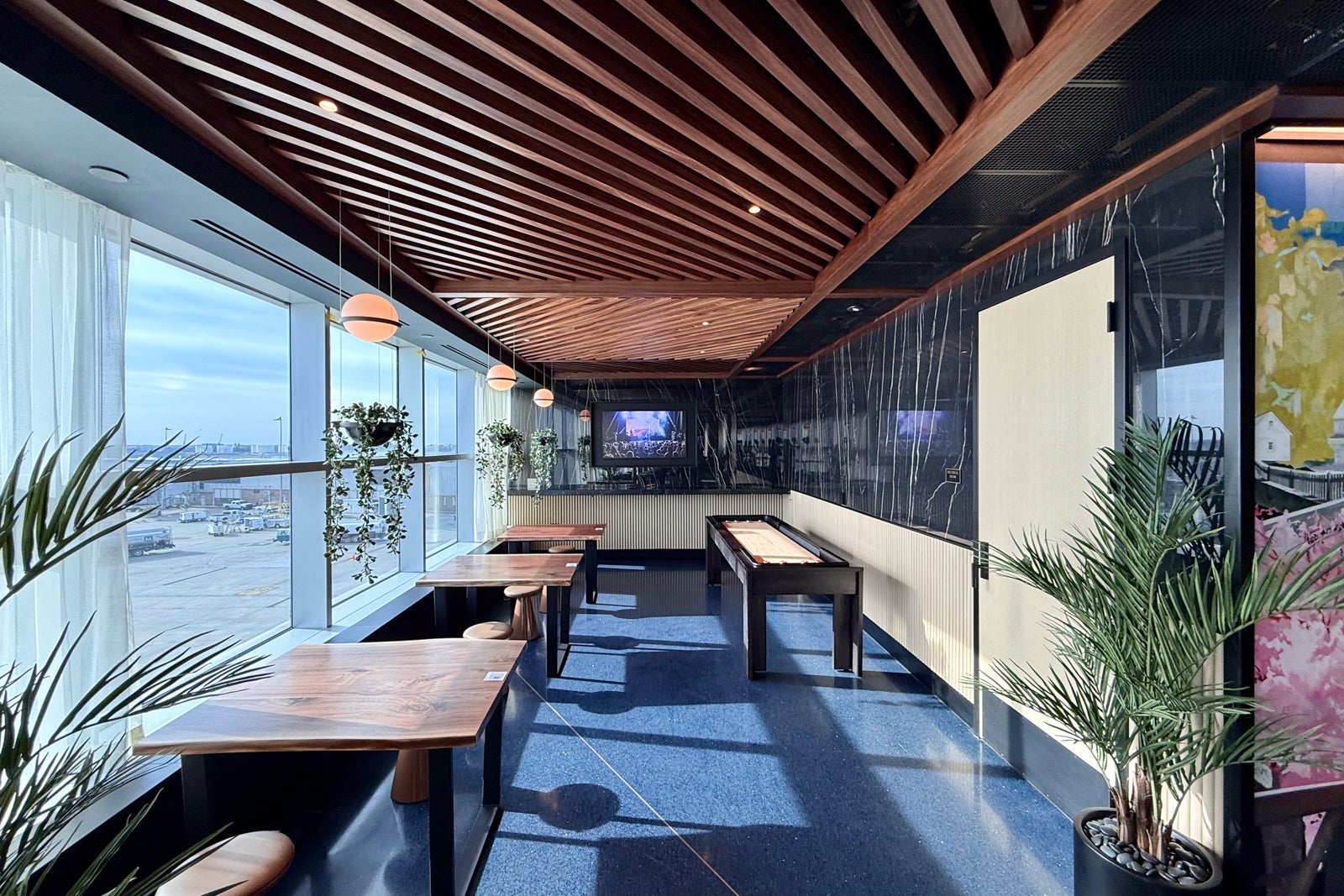 Measuring more than 20,000 square feet, the sprawling space features a slew of places to relax, get some work done, play a game and much more. There are so many ways to pass the time waiting for your flight that you might not even remember you're in an airport.