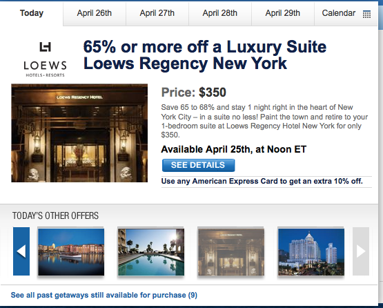 Remember, pay with an American Express credit card and save 10%. The certificates include room rate and tax, so these are actually a pretty amazing deal - $315 for a night in a spacious suite in NYC is almost unheard of (barring using elite status or points to get upgraded or bribing the check-in agent).