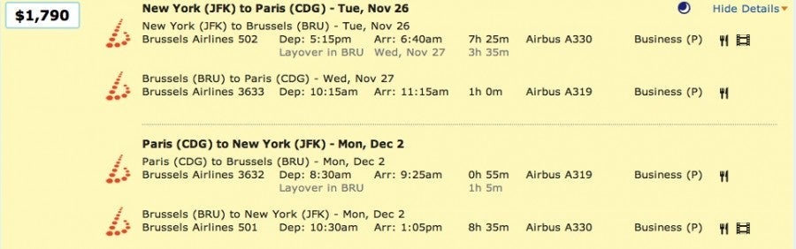 - Paris on Brussels Airlines through Brussels for $1,790 total roundtrip (8,334 miles).