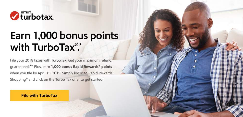 For avid Southwest fliers, the airline is offering 1,000 bonus Rapid Rewards points when you file using TurboTax by April 15, 2019. That's more than half of the points needed to fly Southwest to Hawaii once a new round of sales begin.