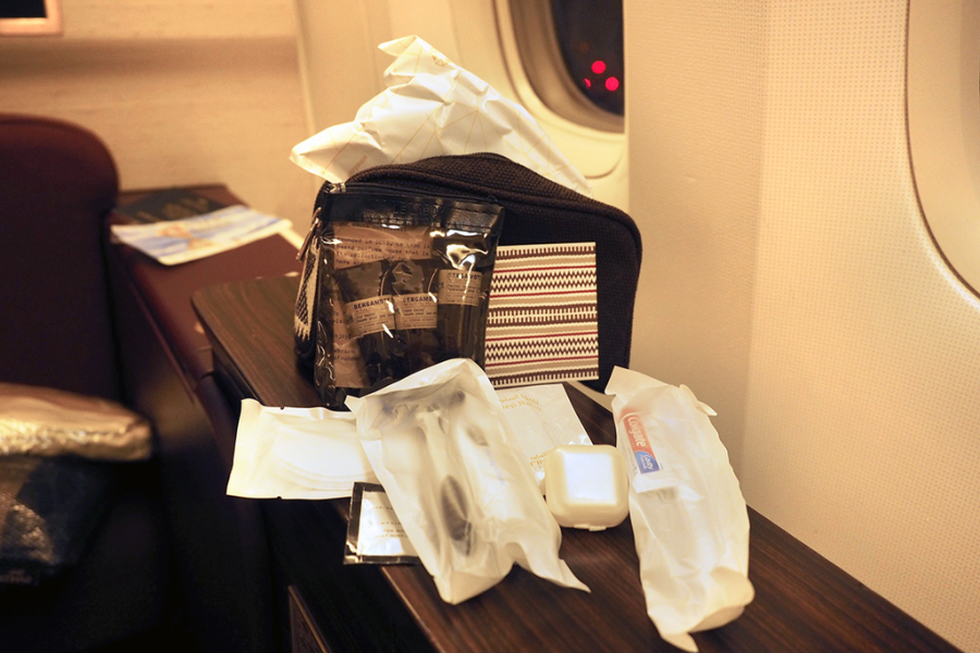 Etihad's first class amenity kit includes ear plugs, but you can always bring your own.