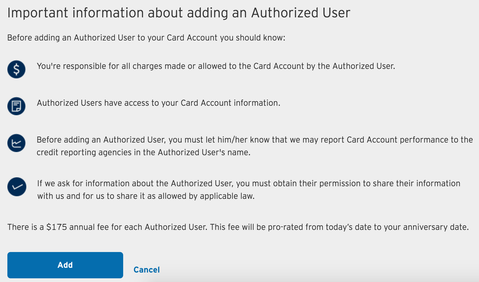 Though the terms and conditions for the credit card never mentioned the fee, users noticed that when attempting to add an authorized user online, they were taken to a page showing this: