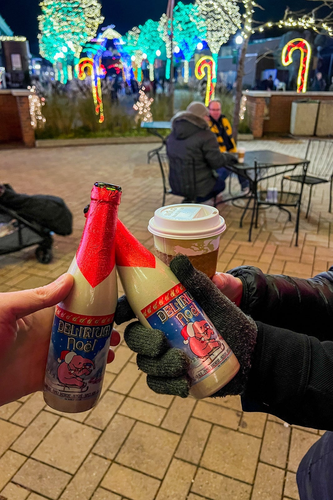 ZooLights was much less crowded than the market, which was a huge relief. We first went to the concession stand where my mom got a hot chocolate and my dad and I bought Belgian beers (classic). There's also a variety of snacks on sale, like pretzels and popcorn. Frankly, Delirium Tremens Belgian Christmas Ale is one of my favorite beers, so I couldn't pass it up.