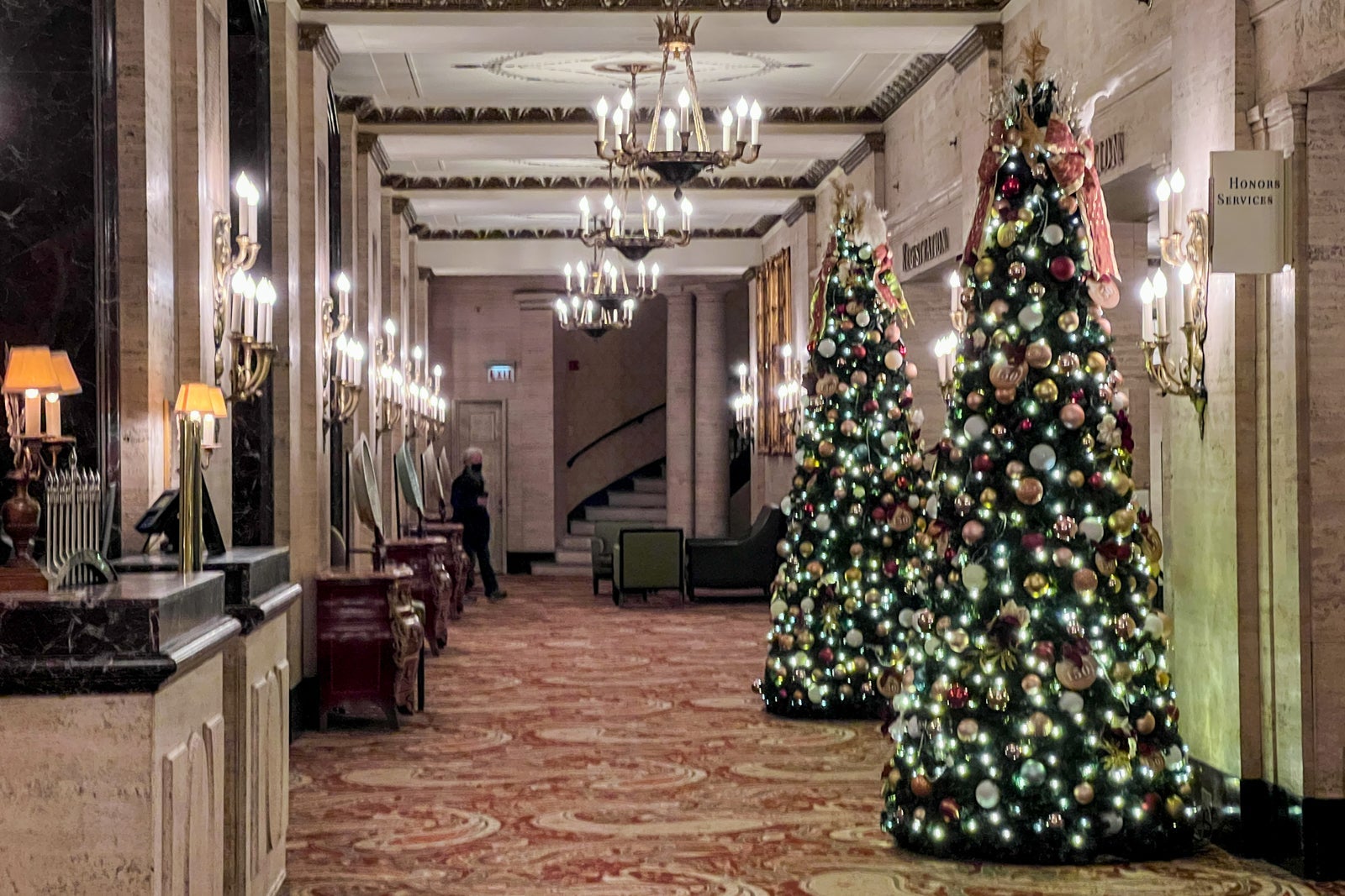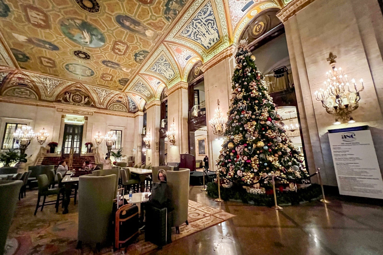 The Palmer House has been a Chicago institution for far longer than I've been alive. The historic hotel, which originally opened on Sept. 26, 1871, has been a part of the Hilton portfolio for years now. Everything about the hotel, from the lobby decorations to the classic architecture, screams holidays to me.