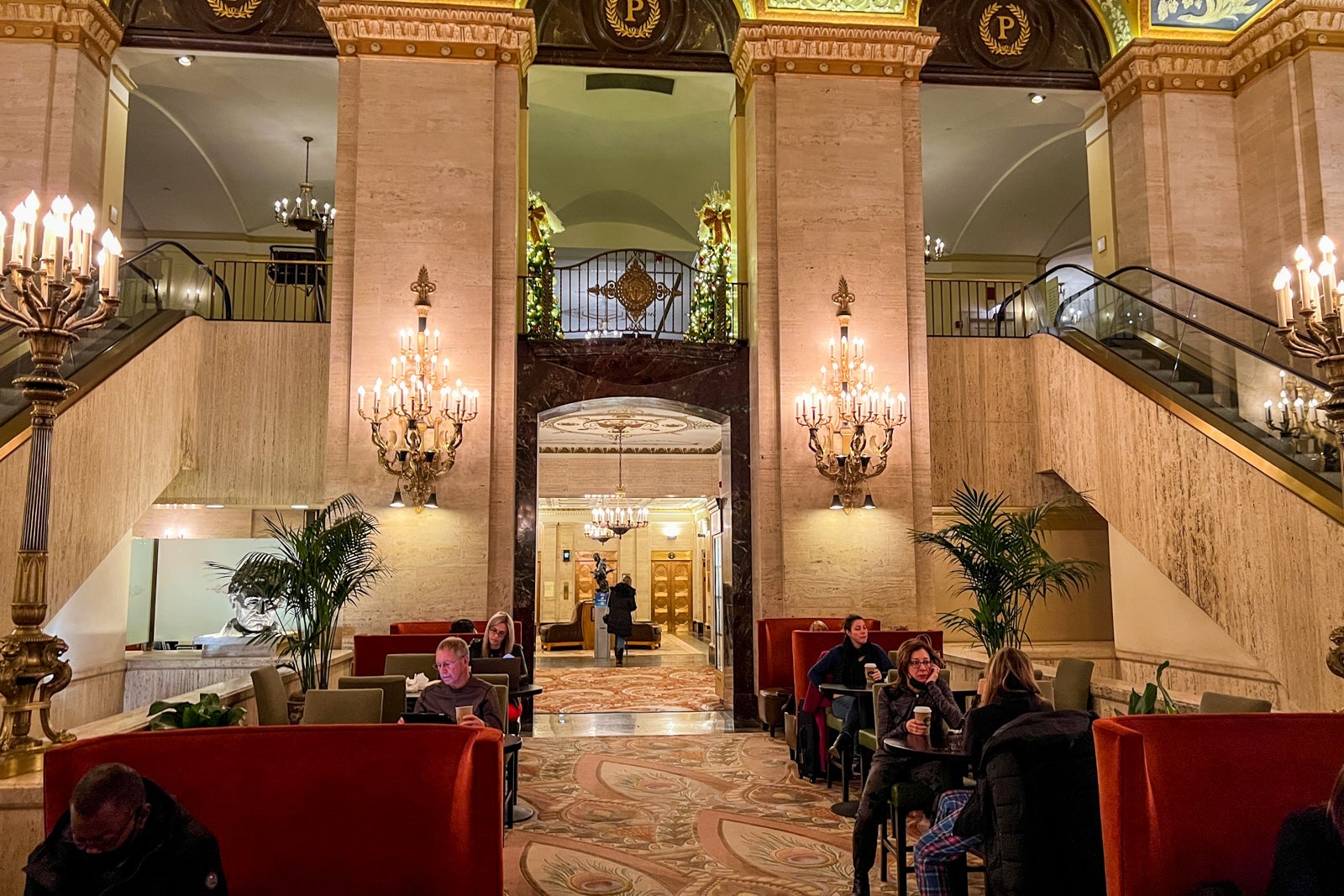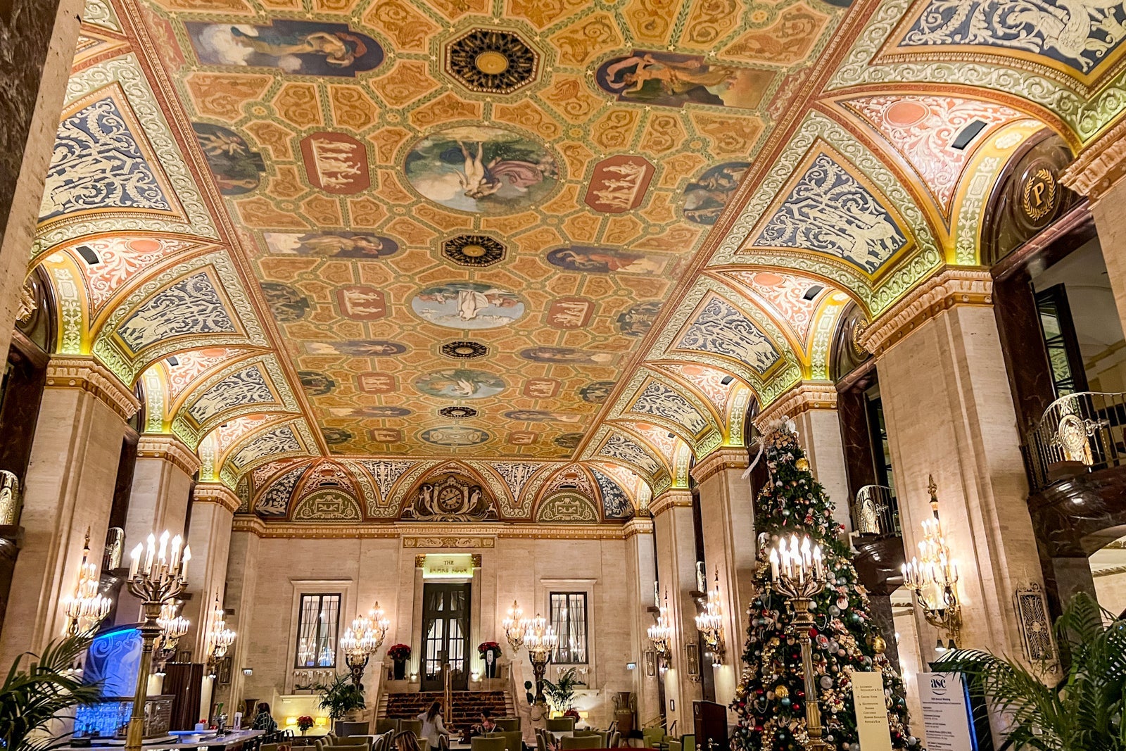 Even during the rest of the year, the Palmer House's lobby features an intricately painted ceiling, a classic bar that serves up an assortment of cocktails and retro furniture I've always adored.