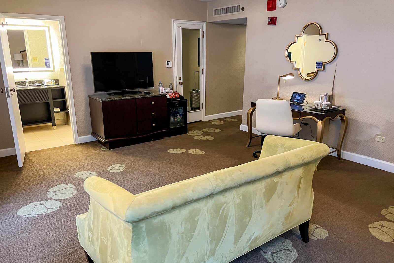 I booked a night at the property and reserved a standard room with two queen beds and was upgraded in advance to a larger room with two bathrooms. This was much appreciated, as it made sharing a hotel room considerably easier. Overall, the hotel was fine for what it is.