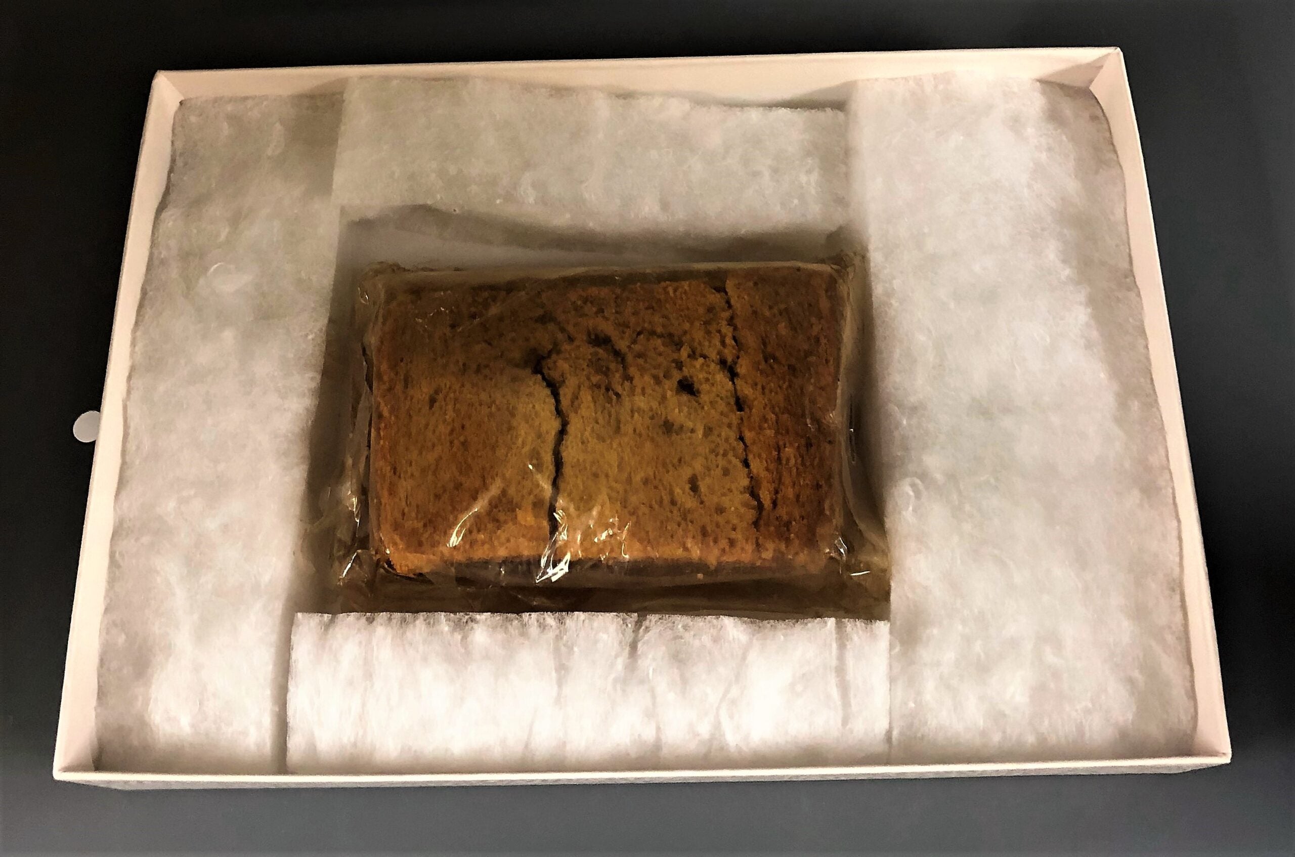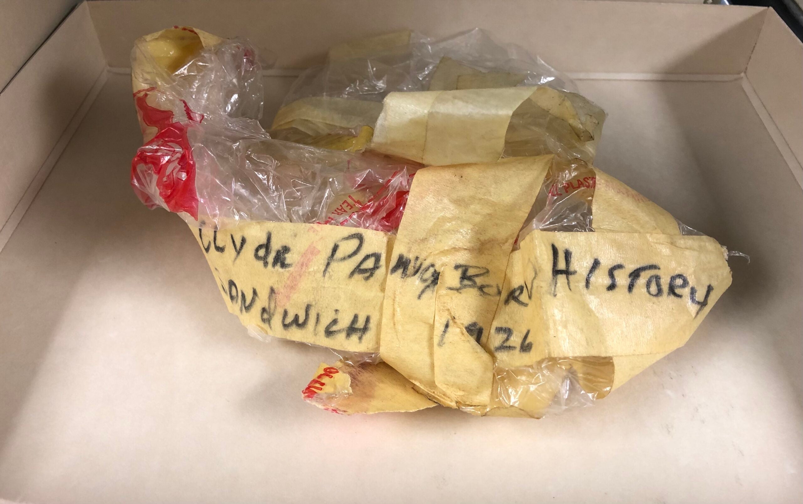 "I had heard rumors about the sandwich being in our collection but never went looking for it," said Anna Spencer, the collections coordinator for the museum. But last summer, knowing that the 90th anniversary of the Miss Veedol flight was approaching, Spencer decided to feature flight-related artifacts in one of the museum's behind-the-scenes "Curator's Corner" YouTube videos. "We finally went looking for the sandwich and found it," Spencer said. "It was exciting to find and shocking to see the state of it. I assumed we'd find a pile of mold, but it was preserved extremely well."