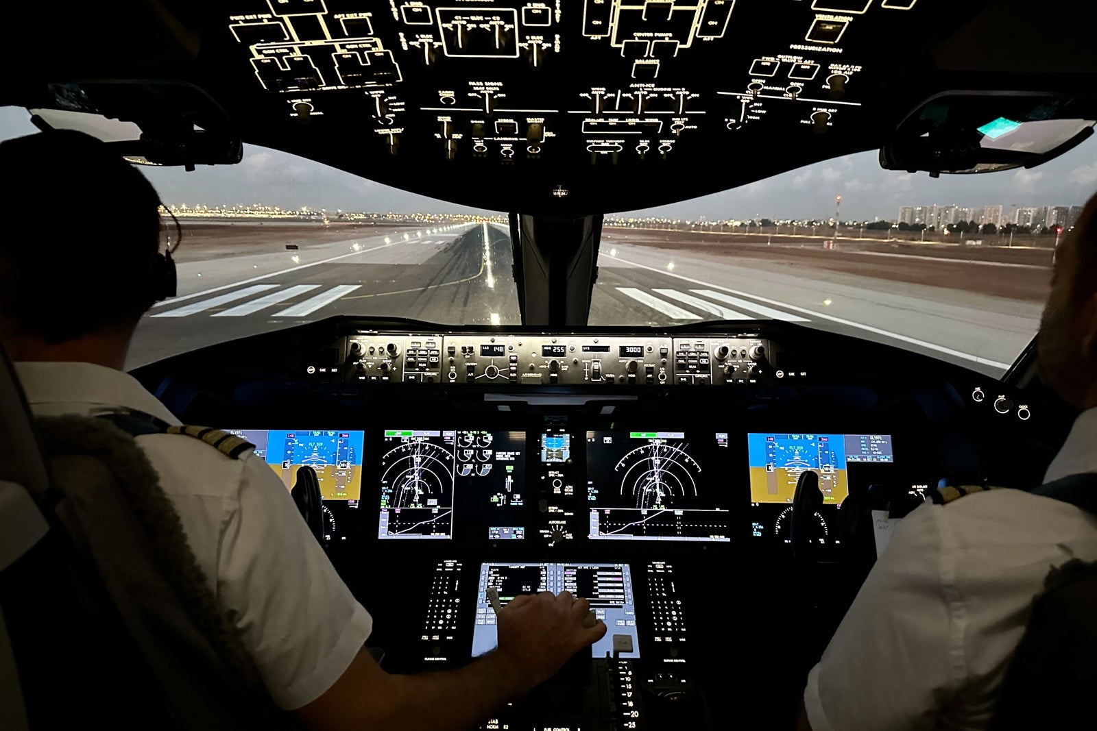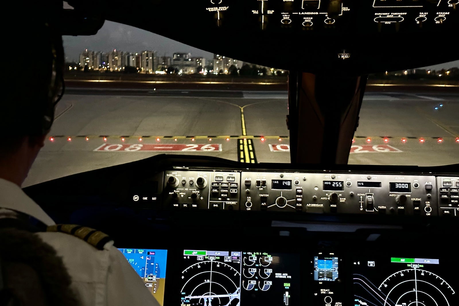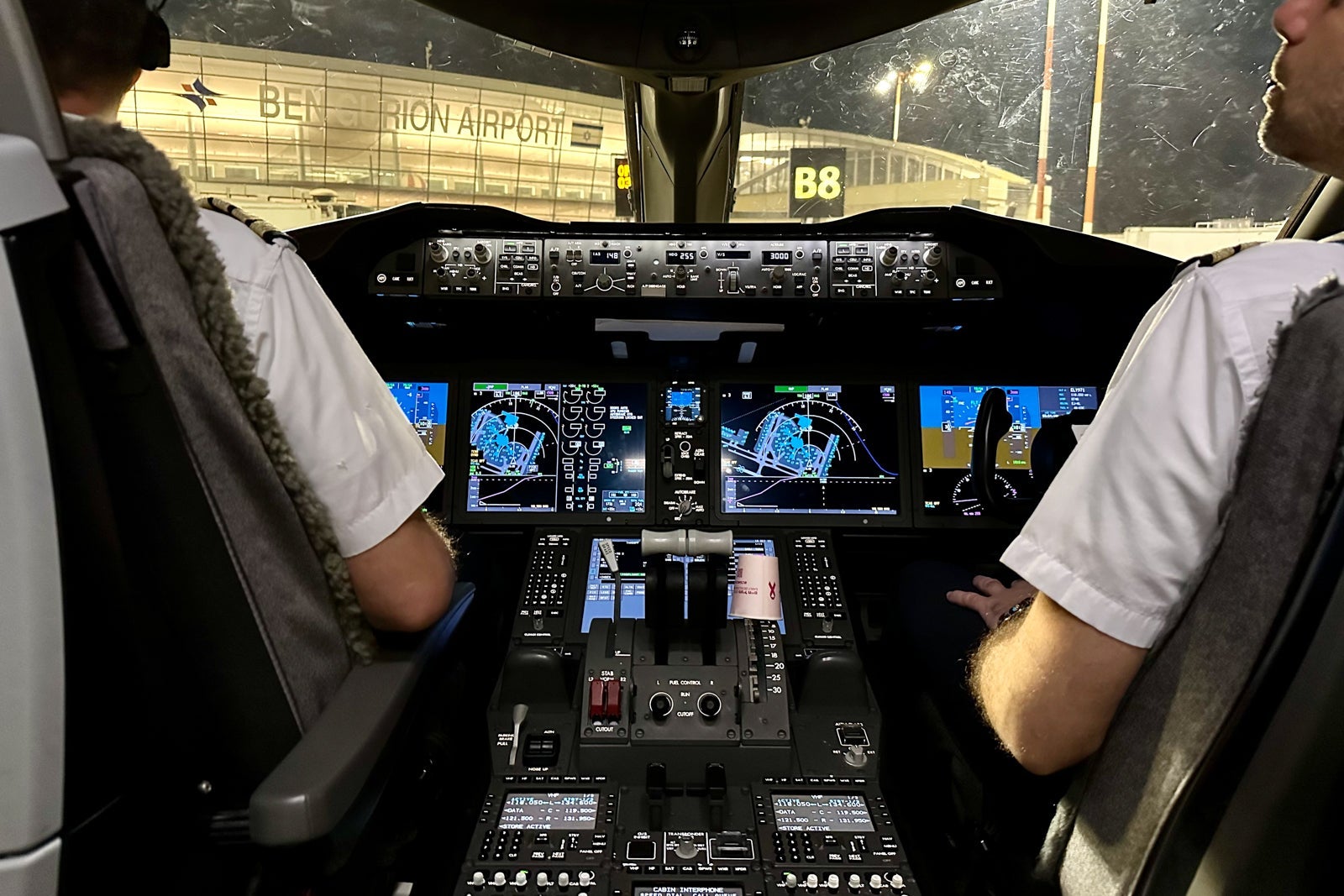 My time in the cockpit began just a few minutes before our scheduled 5:30 a.m. departure from Gate B8 at the Ben Gurion International Airport (TLV) in Tel Aviv.