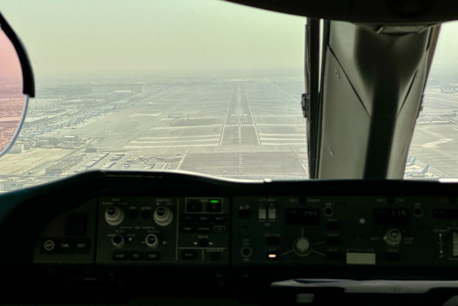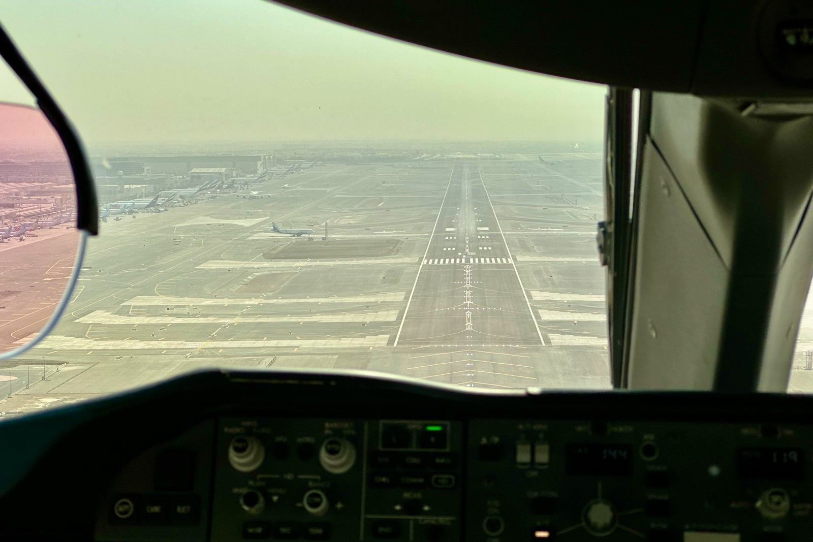 I watched as Capt. Shnider pulled back on the thrusters, disengaged the autopilot and began gliding us into Runway 12L at the Dubai International Airport (DXB).