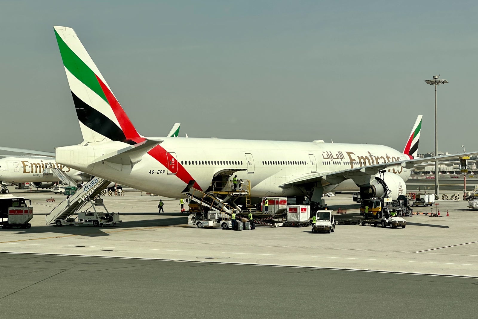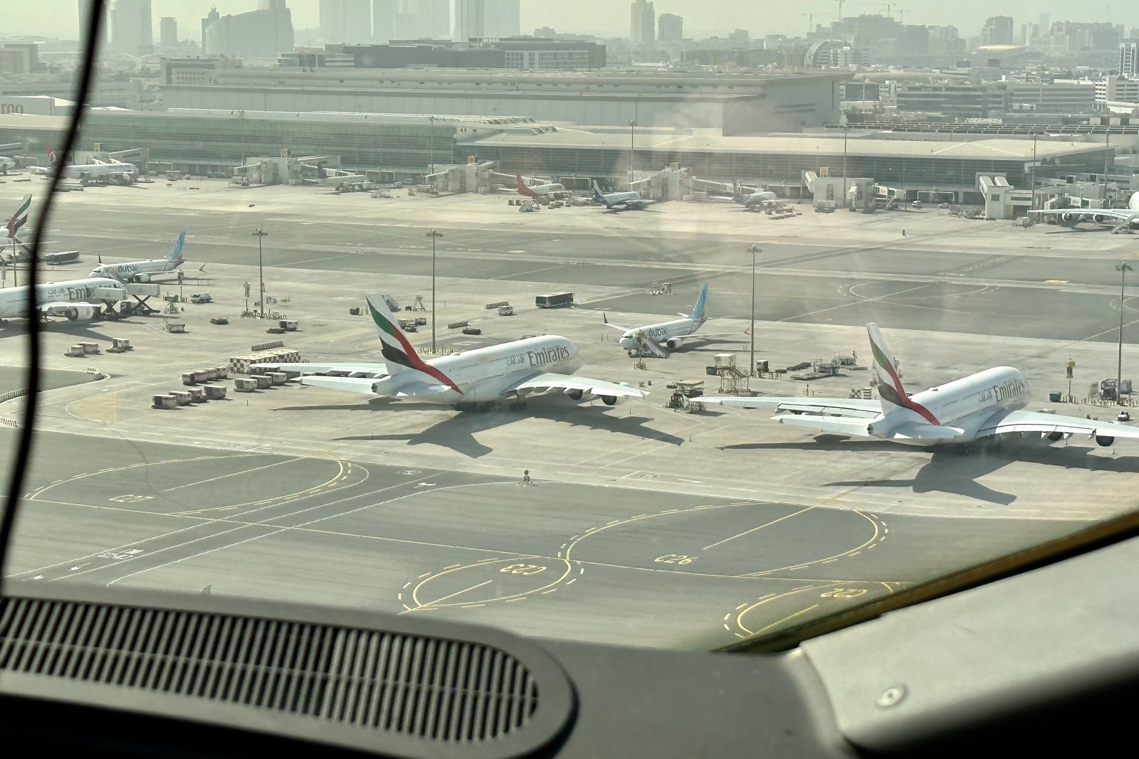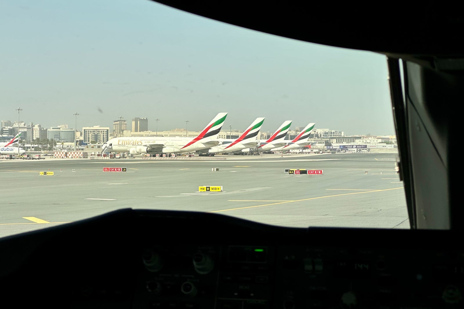 Of course, being that we landed in Dubai, there were scores of Emirates Boeing 777s and Airbus A380s, as well as some Boeing 737s operated by the low-cost FlyDubai. (Before the Abraham Accords in 2020, you rarely saw an El Al jet parked next to a sea of Emirates planes.)