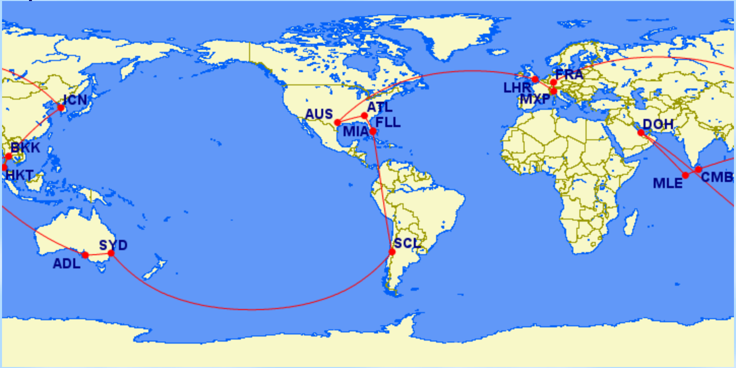 Almost two years later, I am enjoying reflecting on my trip and going through photos of my favorite adventure to date. It took me 16 flights in 14 days, trekking through 11 countries to spend nearly 570,000 points. My itinerary ran as follows: