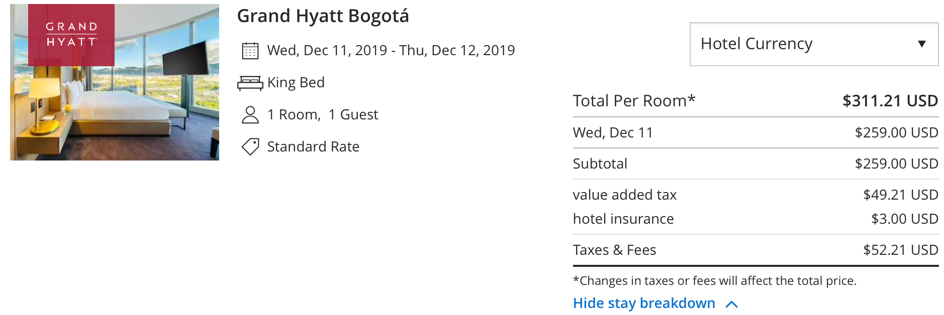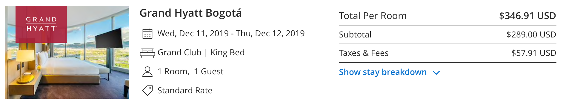 Speaking of Hyatt, staying at the Grand Hyatt Colombia represents a phenomenal use of your Hyatt points. As a category 3 hotel, a single night will cost just 12,000 points for a king room. Even better, you can book a room with club access for 17,000 points/night. We've long said that using Chase Ultimate Rewards, which transfer at a 1:1 ratio to Hyatt, is one of the best ways to redeem your points. This is especially true at the Grand Hyatt, where your out of pocket cost can be nearly as much as $400: