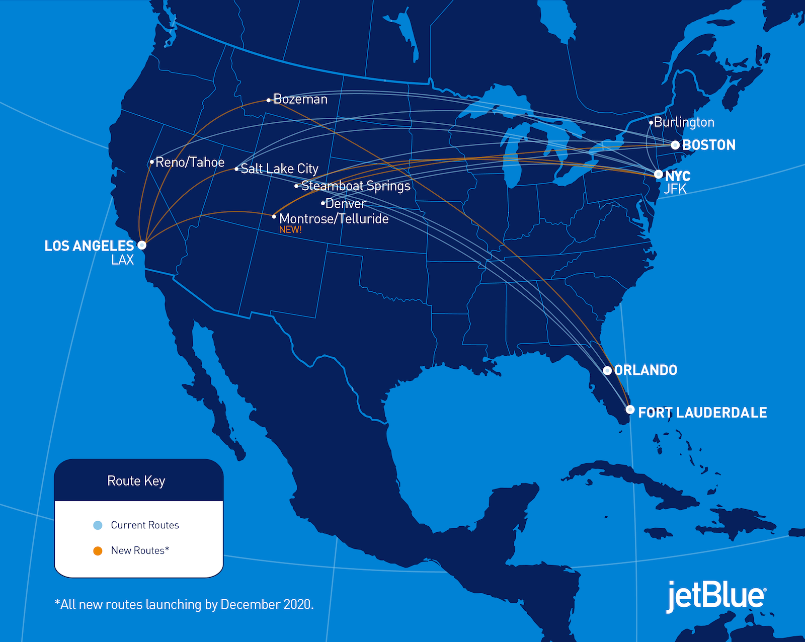And JetBlue will connect Montrose to Boston (BOS), Los Angeles (LAX) and New York JFK for the winter beginning Dec. 19. It will also add new nonstop service between Steamboat and JFK.