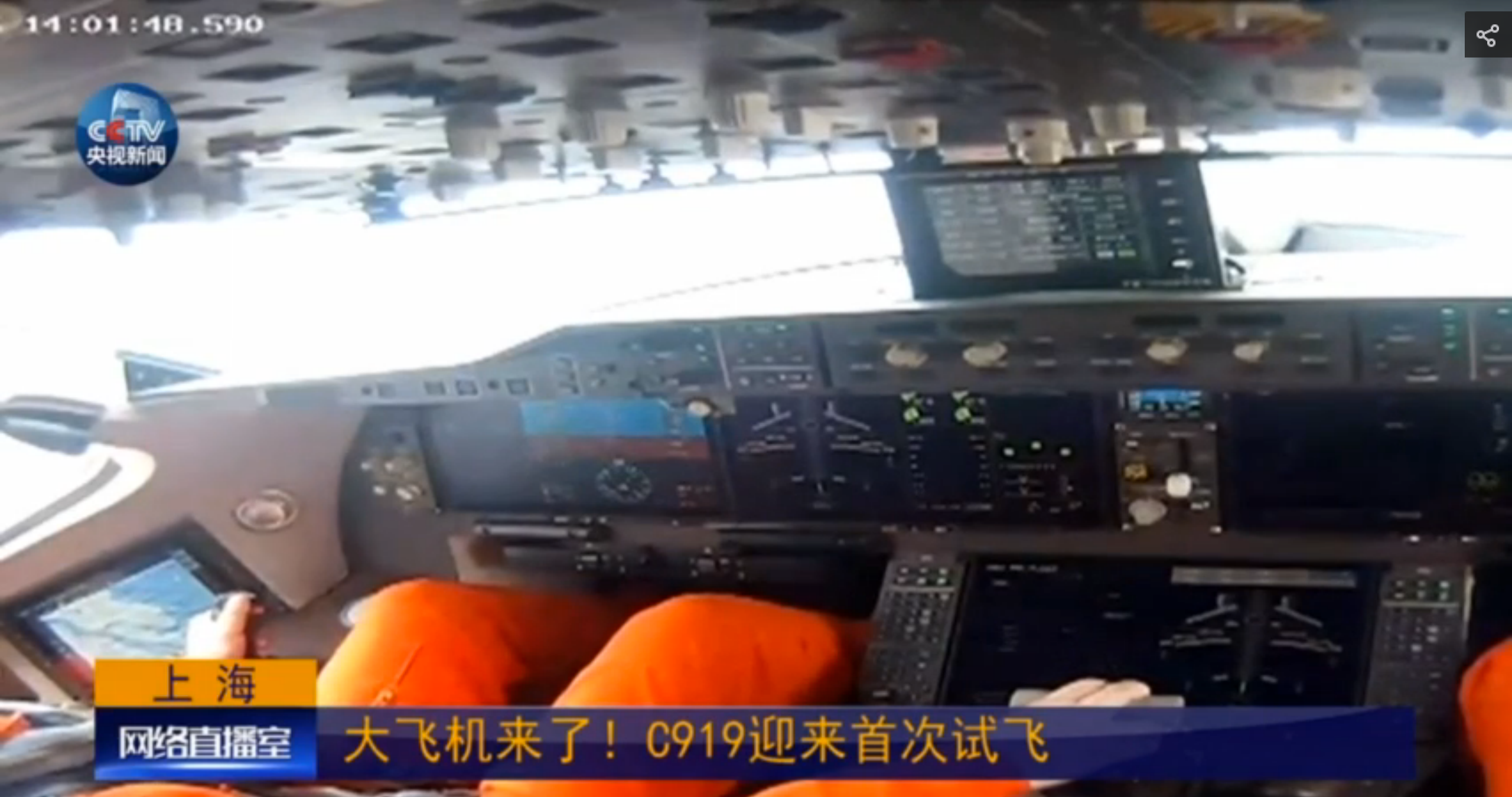 Screenshot from the live broadcast of the C919 first flight.