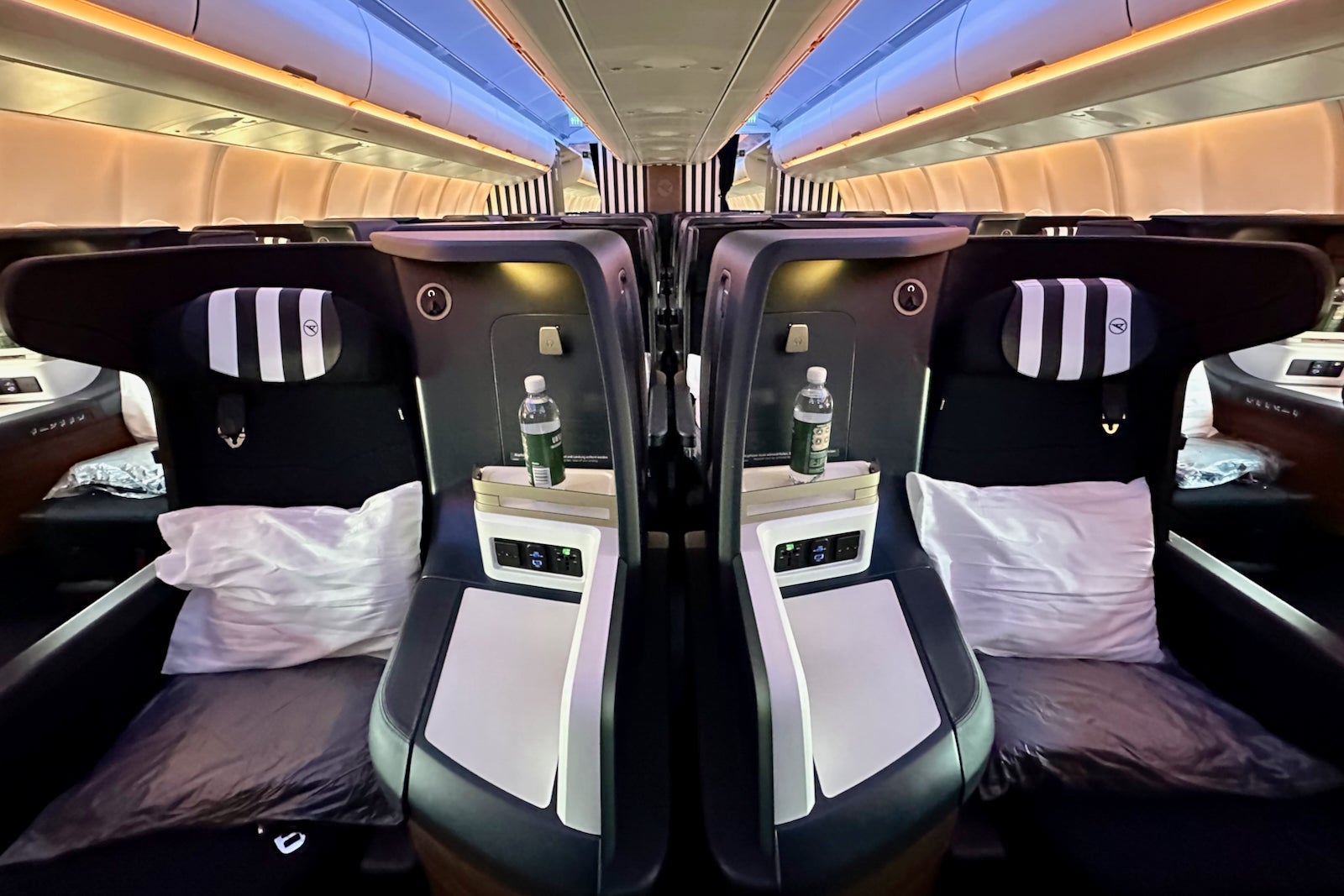In odd-numbered rows, the center seats are in a "honeymoon" arrangement with the two pods placed right next to each other. Though the seats don't convert into a double bed (something you'll find in other top business-class cabins), this is where I'd recommend sitting when traveling as a couple.
