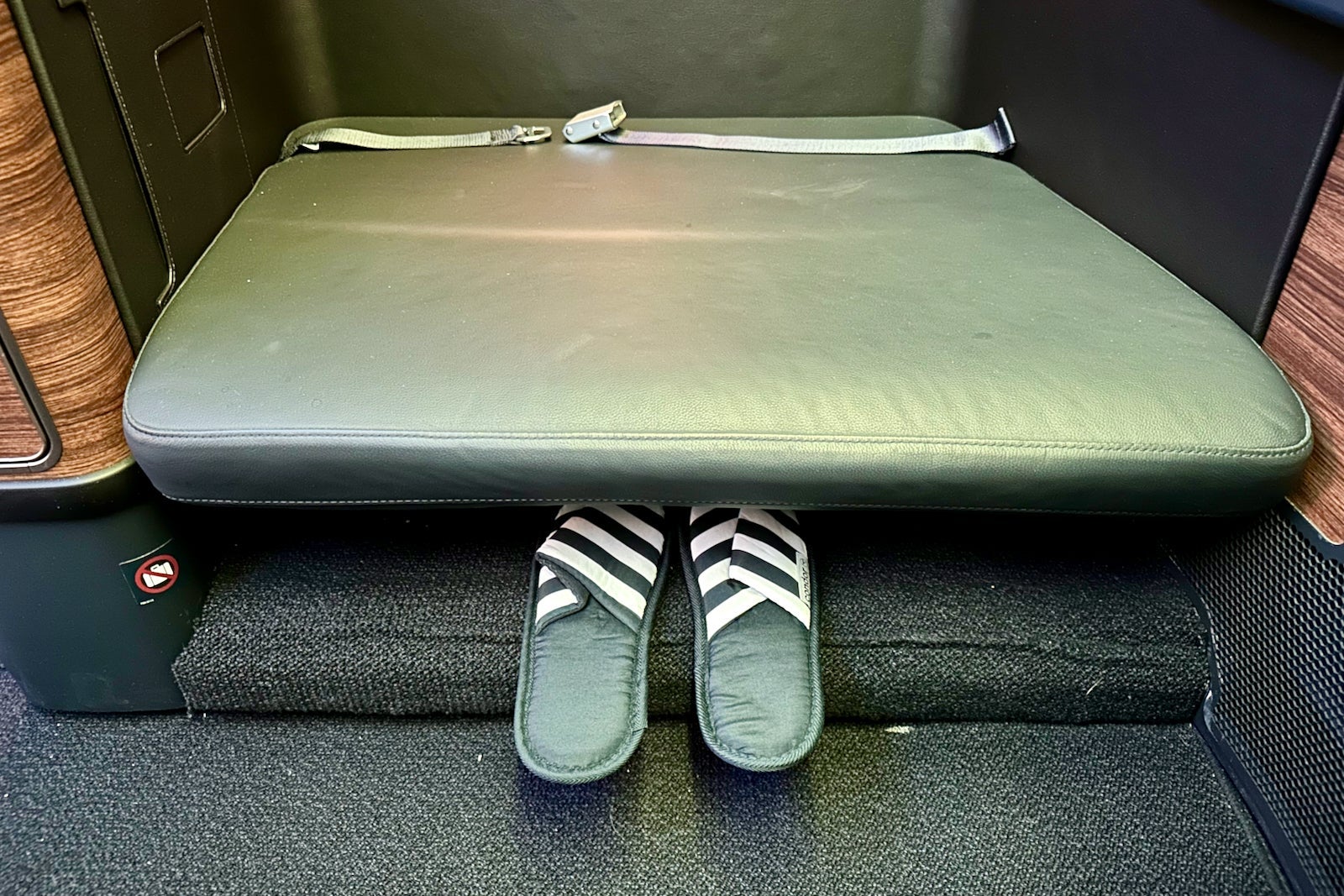 When it's time to catch some sleep, each seat reclines into a 78-inch fully flat bed. That said, those with larger builds might find the 11-inch-high and 17-inch-wide footwell to be claustrophobic — but there's a solution. More on that later.