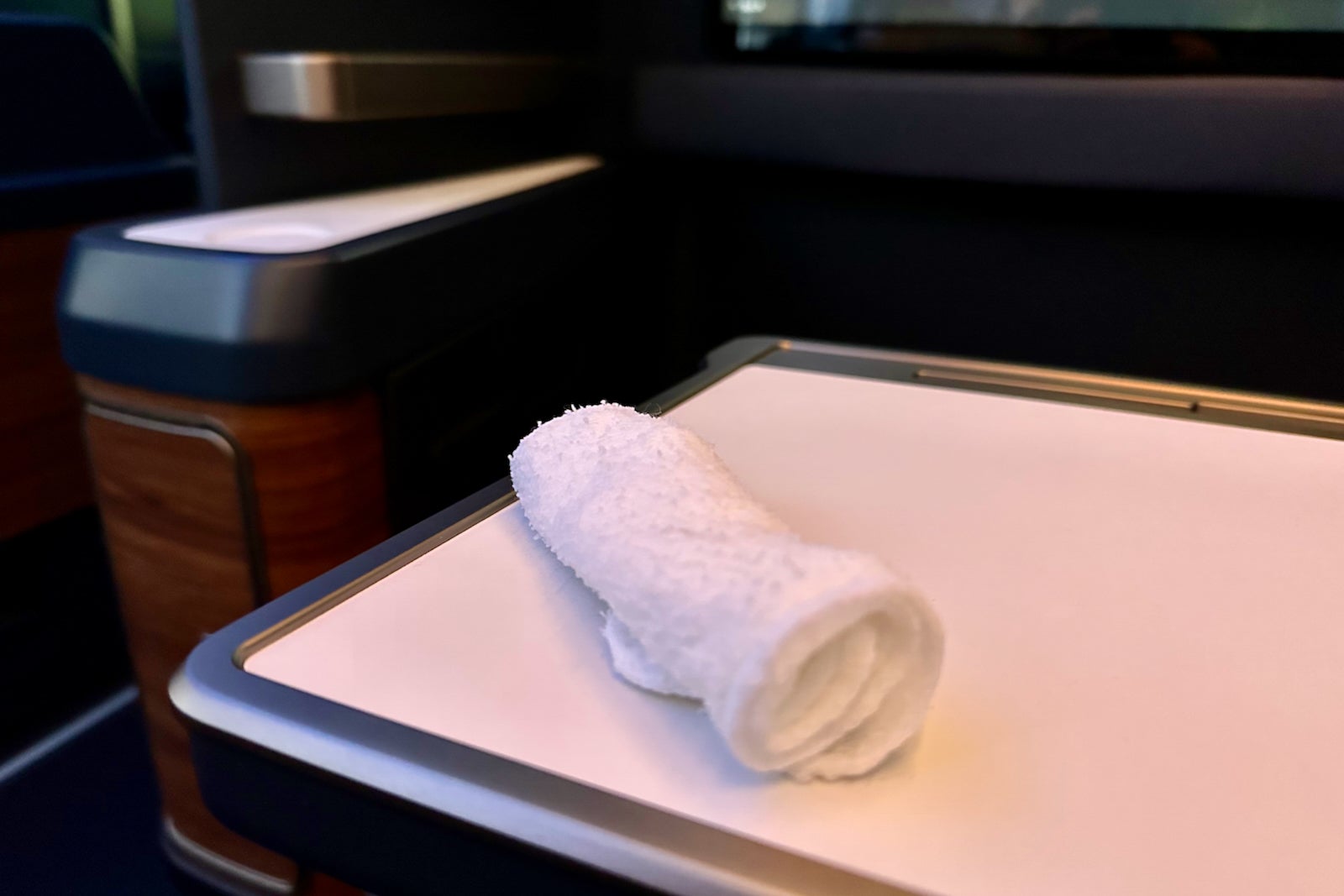 Service began once we crossed through 10,000 feet with a hot-towel service and hand-delivered menus.