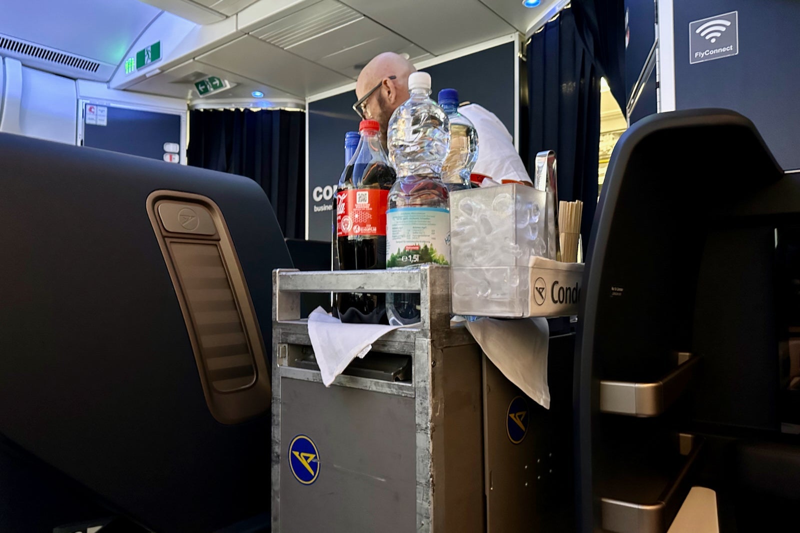 I was very impressed with the service from the two flight attendants serving my aisle. However, I won't judge Condor's service flow based on this inaugural flight because it seemed that the airline specially picked this above-average crew for the special occasion.