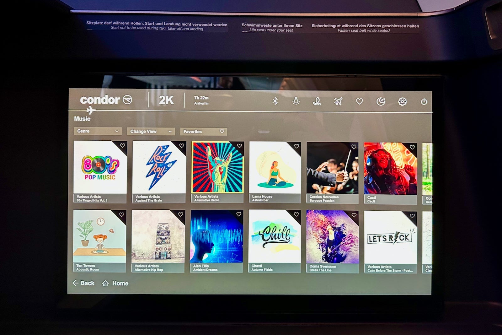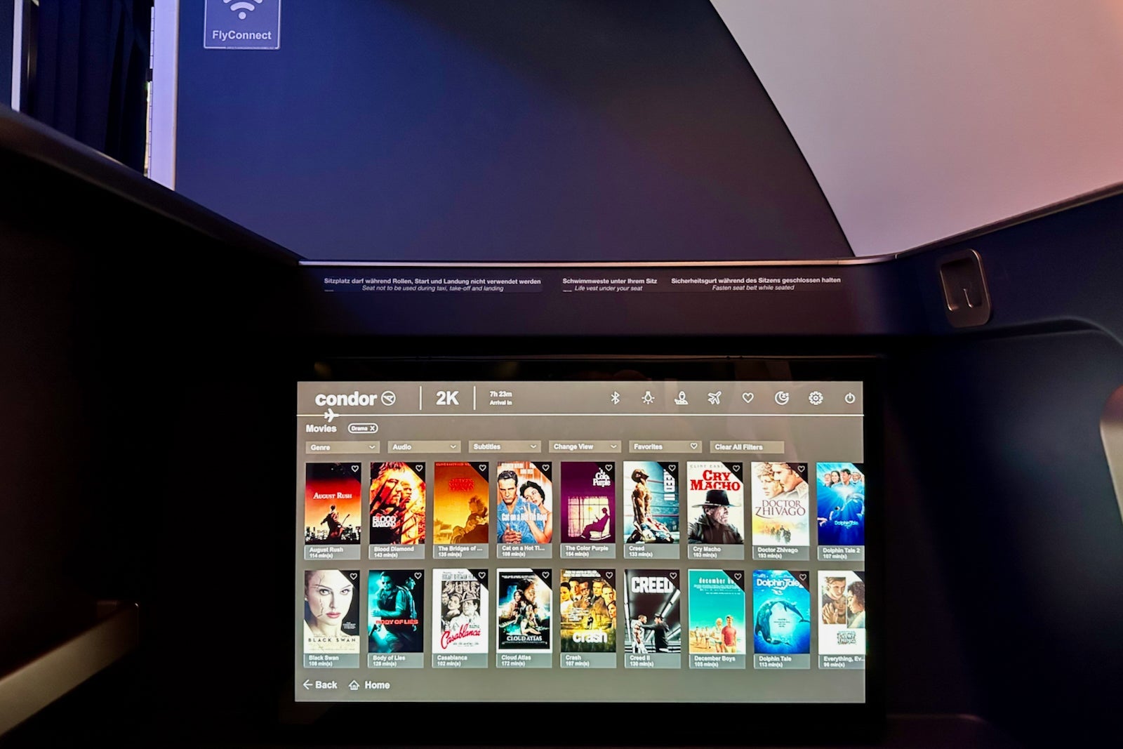 The last time I had a 4K TV on a plane was in ANA's The Room in January 2020, and while the picture quality on Condor matched what I experienced on ANA, I prefer the ANA system since it has an antiglare finish.