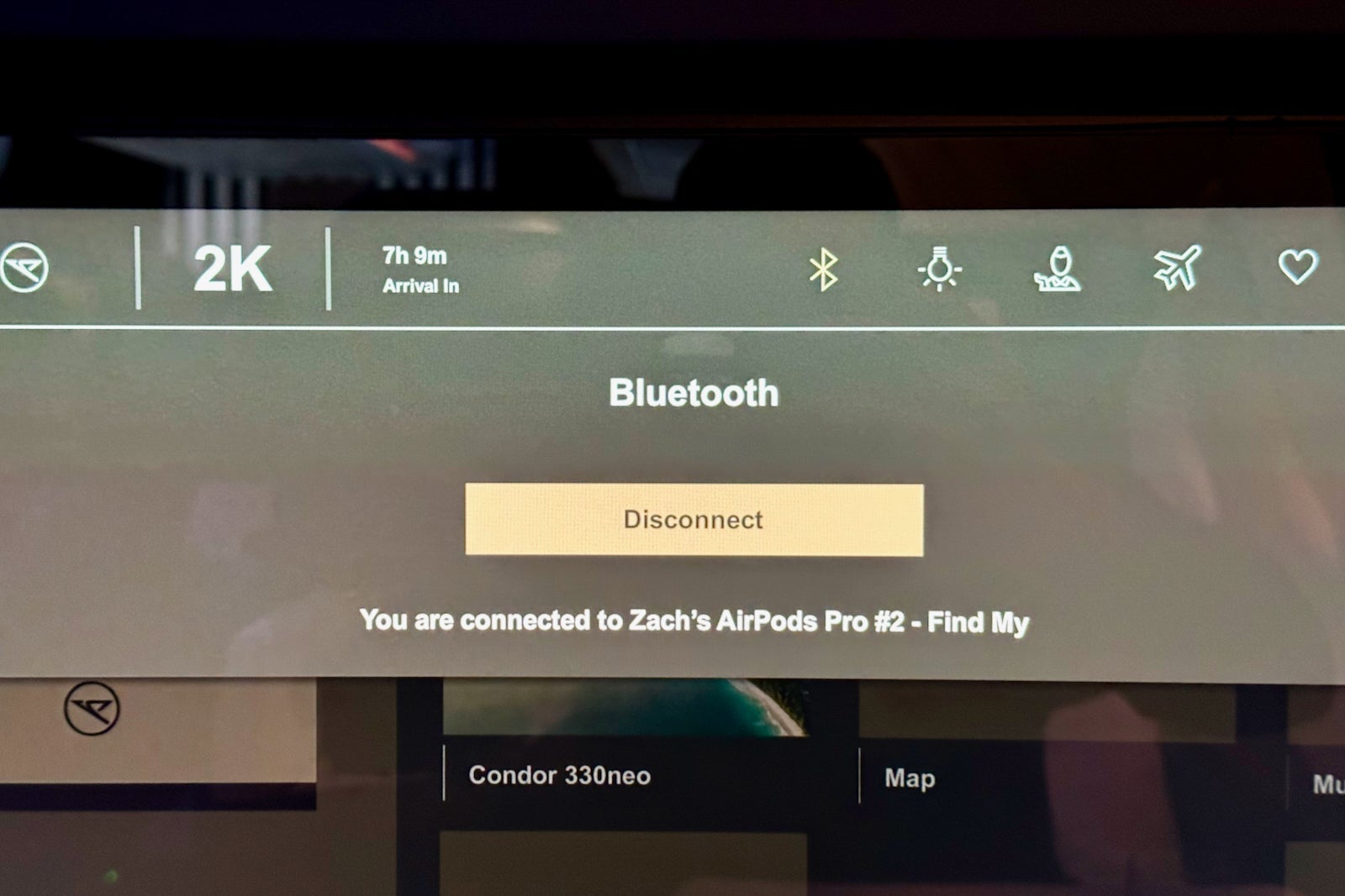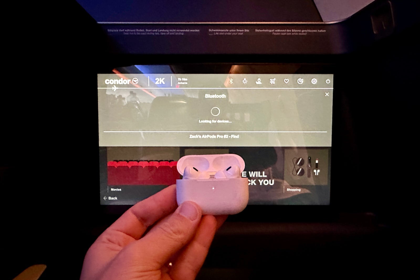 Personally, I had no trouble getting my AirPods Pro connected to the seatback monitor. (Just be sure to hold the circular button at the back of the AirPods case until you see the status light start flashing white. That's how you know the headphones are in pairing mode.)