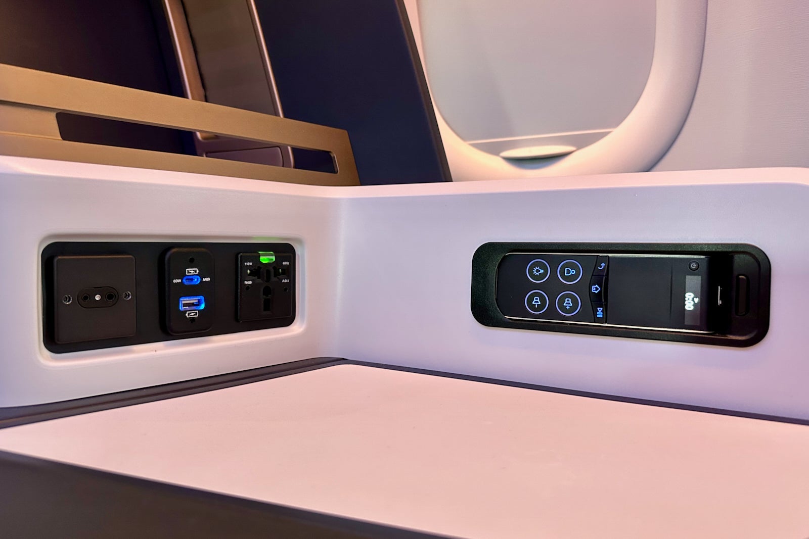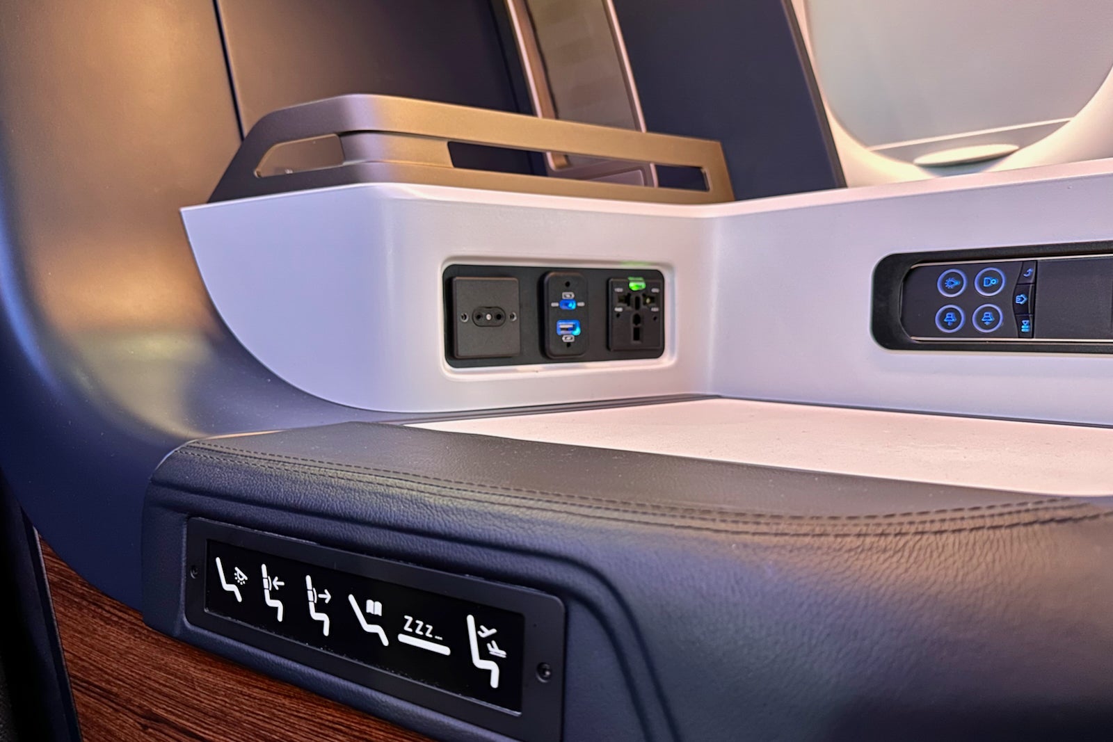 Each seat also features a universal power outlet, as well as a USB-A and USB-C charging port, which worked perfectly for powering my 13.6-inch MacBook Air and iPhone 14 Pro Max.