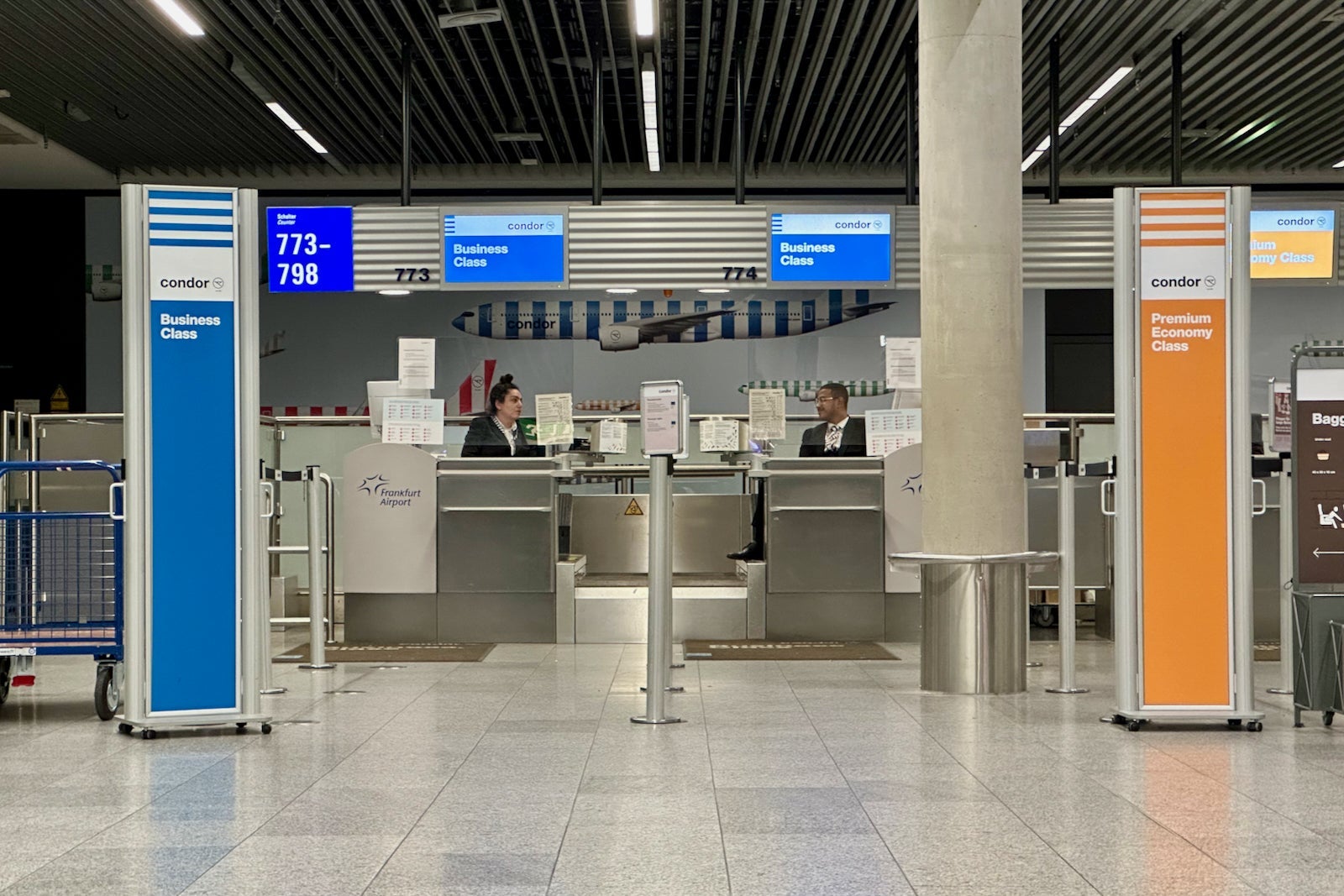 My time with Condor began at 5:45 a.m. on Monday at the carrier's deserted check-in counter in Frankfurt Airport's Terminal 1.