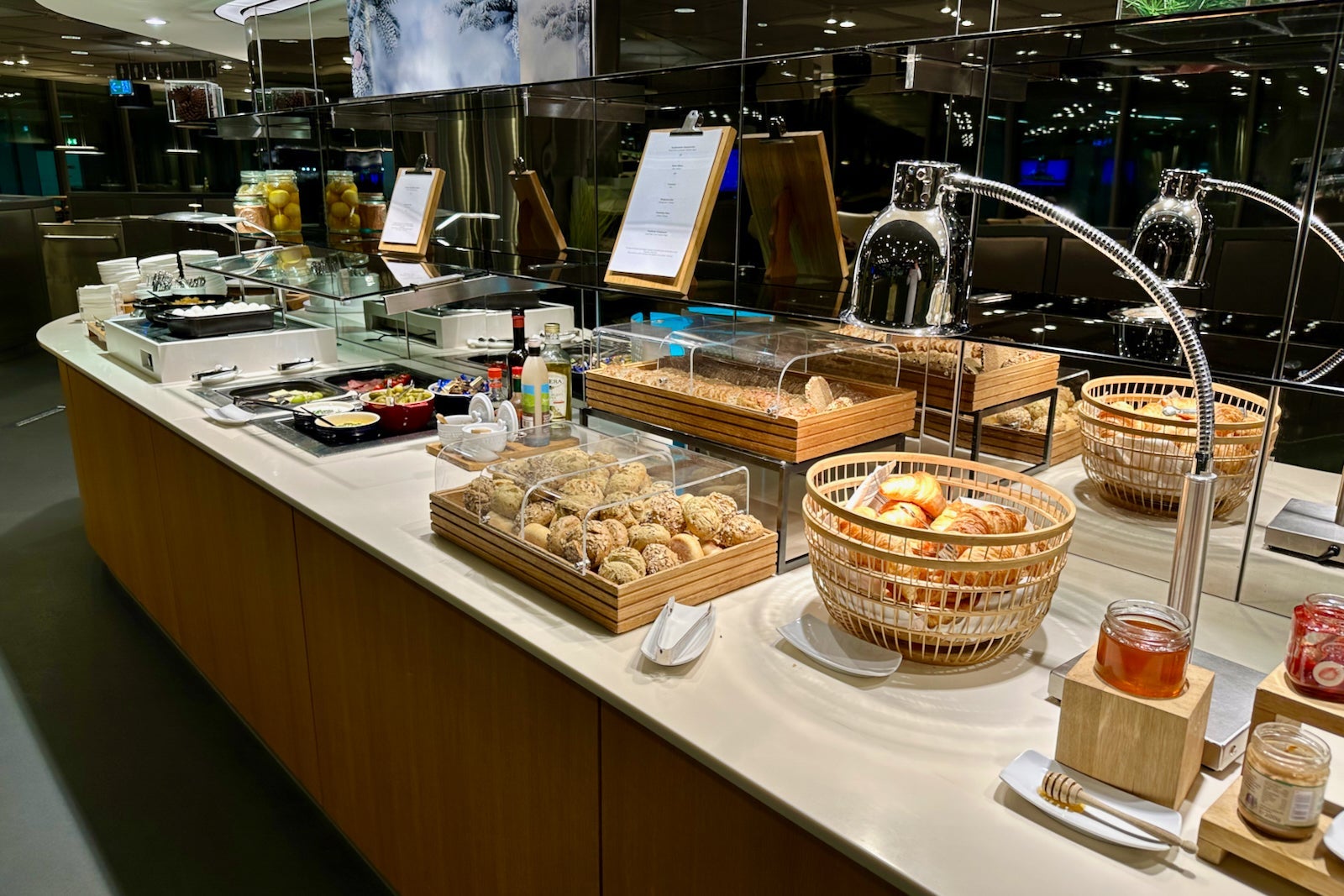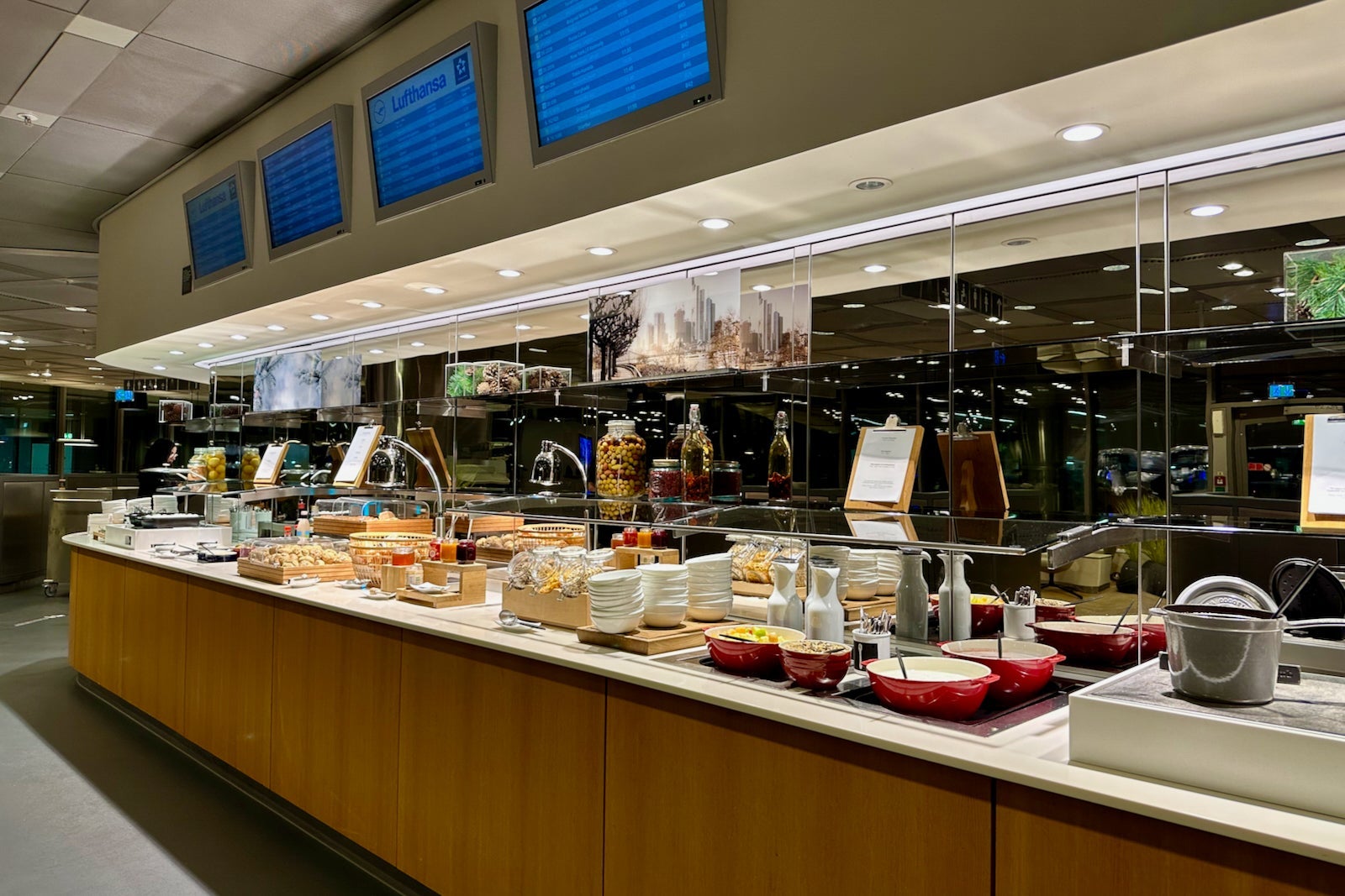 The buffet spread was paltry, and I was disappointed that there were no soft pretzels to be found. I camped out in a corner and connected to the lounge's speedy Wi-Fi to catch up on some last-minute work.