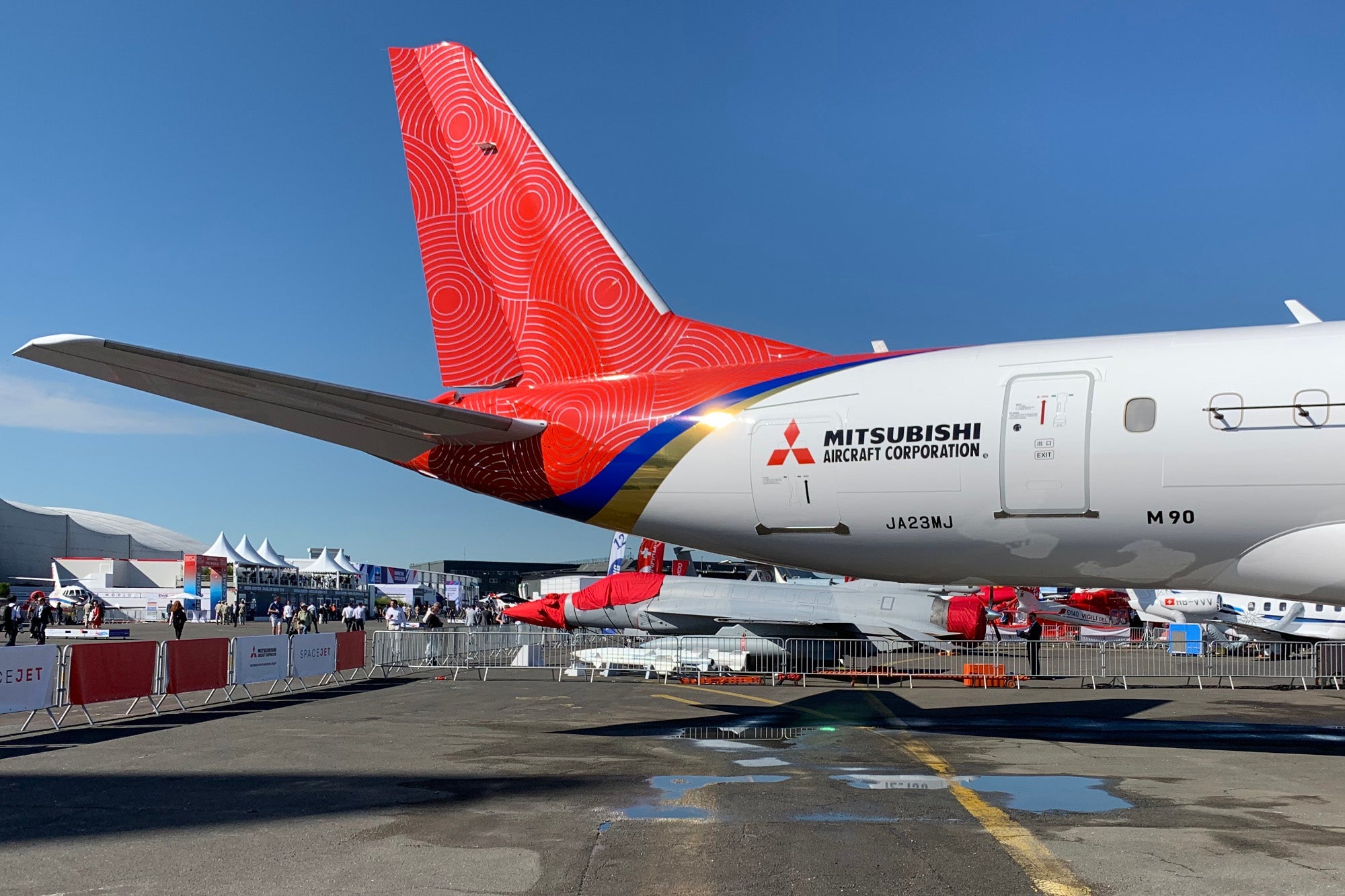 It's one of those things that just never looks as good in the photos, but Mitsubishi brought one spectacular design to the Paris Air Show this year. Said to be inspired by the foil that appears on some Formula 1 cars, the company opted for a red, blue and gold foil tail on its SpaceJet, making quite an impression on a sunny day.