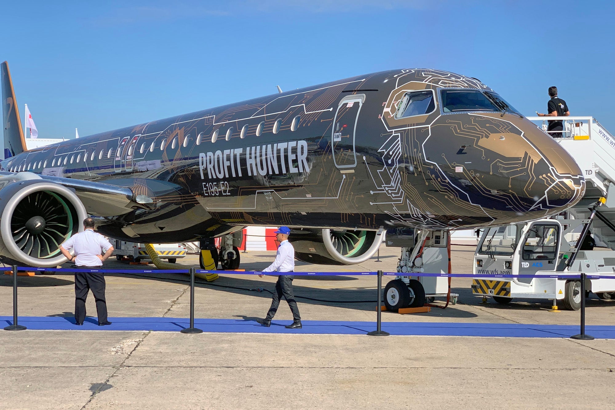 Embraer has delivered a new "profit hunter" for the past few years, a homage to the aircraft's fuel efficiency and lower operational costs. Last year, at the Farnborough Air Show, it was a fairly aggressive shark, while we got a semi-subtle eagle the year before that. This year, it's a high-tech lion. And I am a fan.