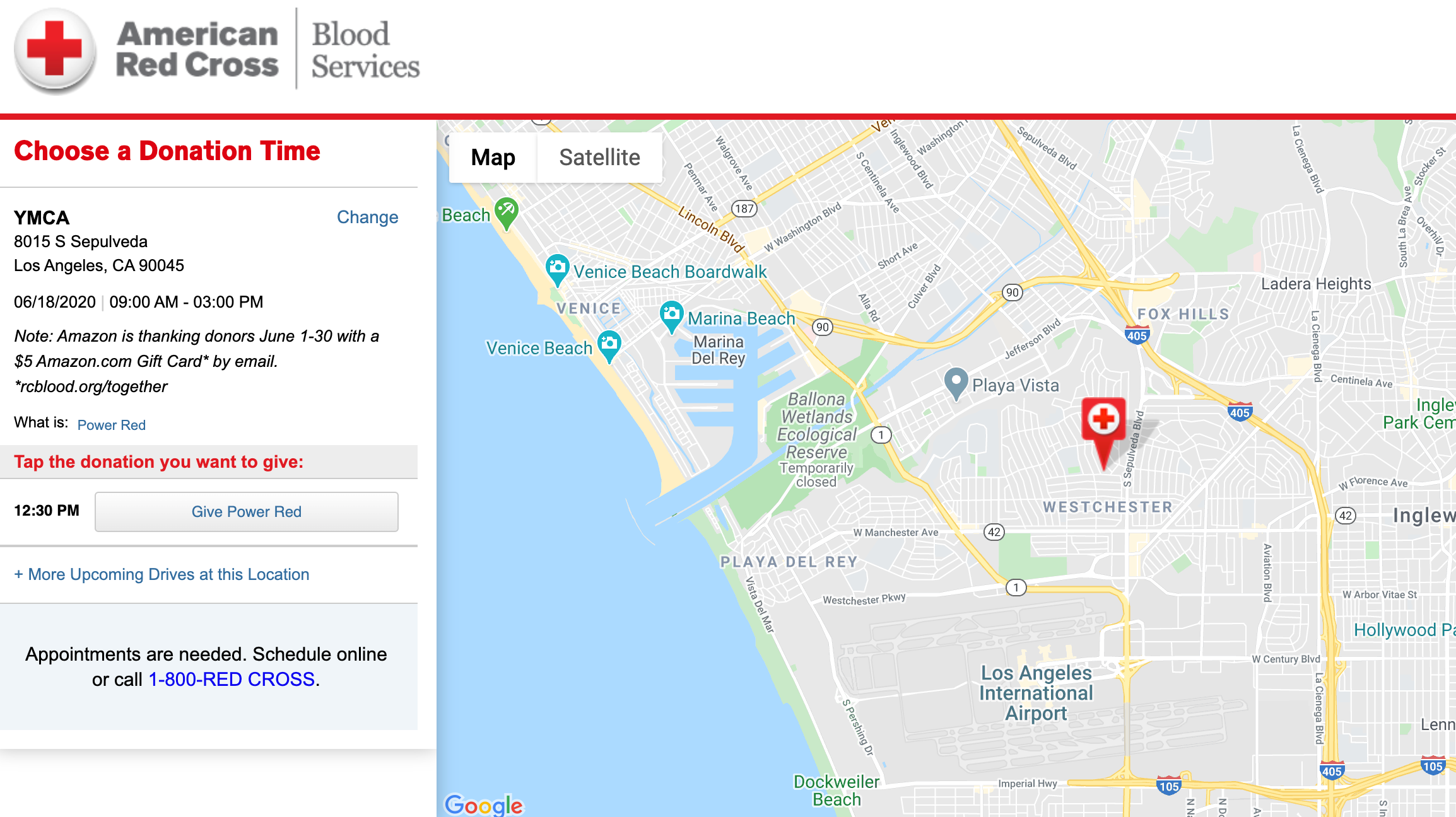 Despite the national shortage of blood, all of the blood drive locations within 50 miles of Austin, TX, were booked full through early July. For New Yorkers, a zip code search shows that the nearest blood donation centers accepting appointments this week are deep in New Jersey. A San Francisco search yielded similar results, while Los Angeles has one lone appointment for June 18: 12:30 p.m. at the YMCA on S. Sepulveda.