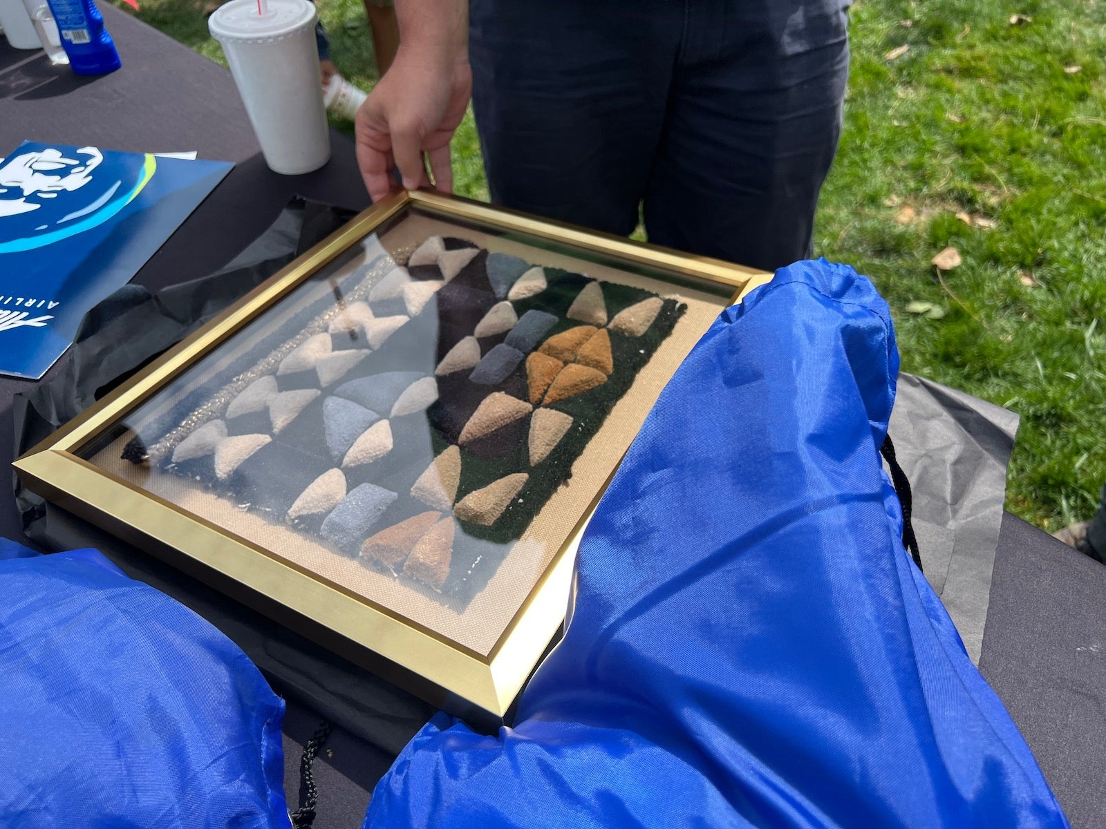 At the event's free-to-enter raffle, Glavinic, who frequently flew Alaska Airlines when he lived in Alaska, won a framed piece of bulkhead carpeting from one of the carrier's planes — one of the many gifts that airlines donated. Other items included scale airplane models, free plane tickets and a seat on regional carrier Horizon Air's final Q400 flight.
