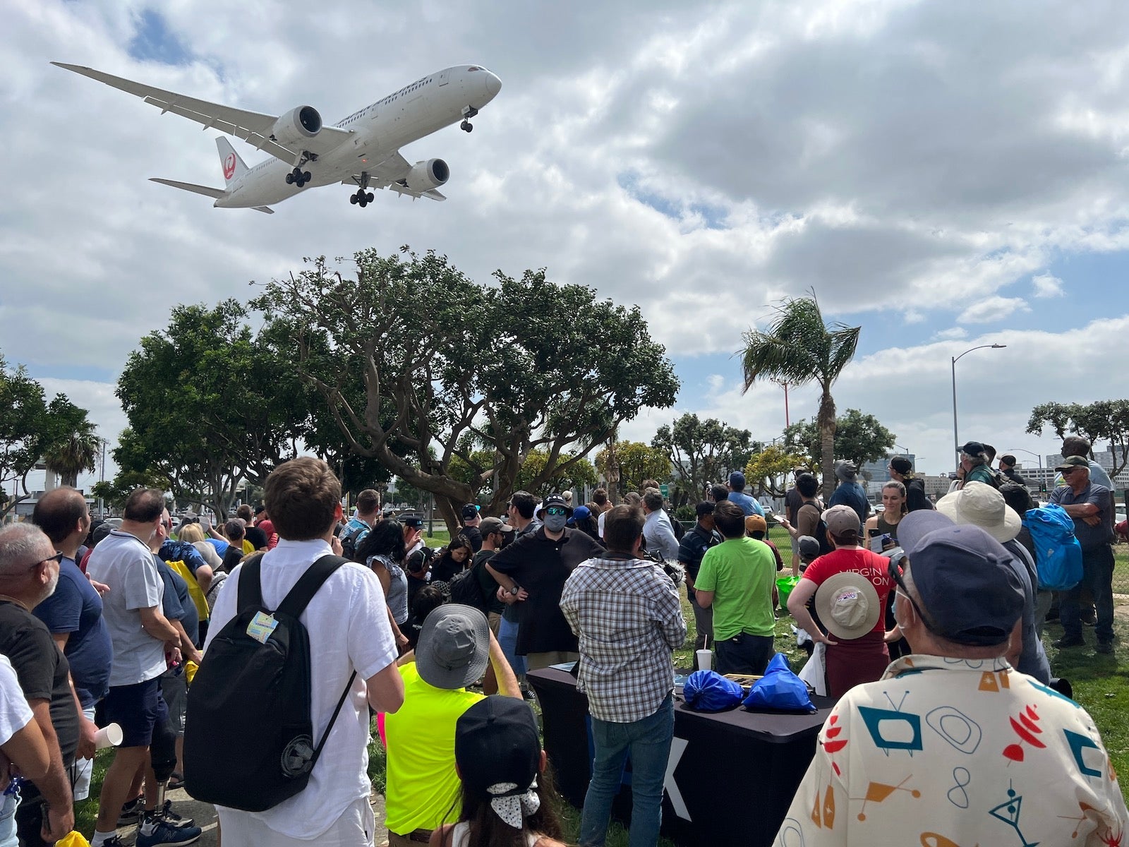 But for a few hours around noon Saturday at a park next to Los Angeles International Airport (LAX), getting distracted by passing jets in the middle of a chat is basically the whole idea.