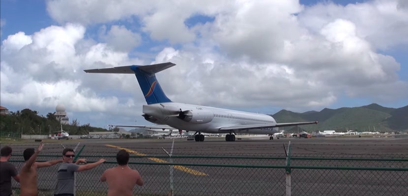 Watch an MD-80 Jet Almost Blow Away Beachgoers in St. Maarten