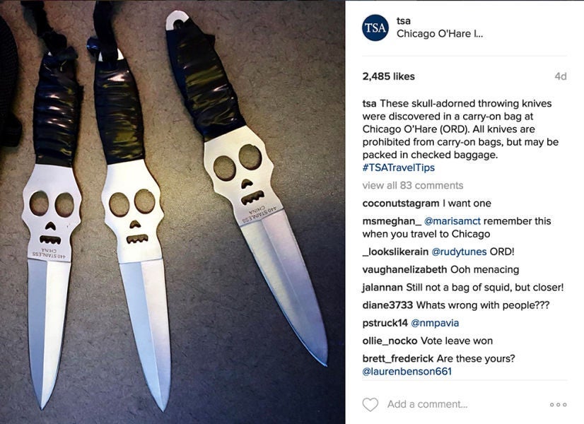 Halloween is still a few months away, but one traveler at Chicago's O'Hare airport (ORD) wanted to keep this spooky knife set close while traveling. Of course, like the prohibited items above, these too must be stowed away in checked baggage or else you can be subject to fines or arrest.