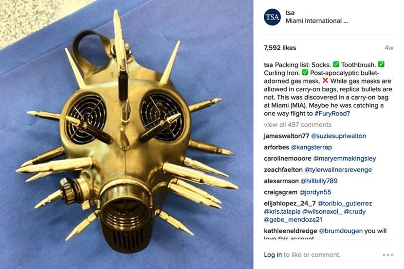 By now we're somewhat used to seeing passengers try to bring concealed weapons or machetes on board a plane in their carry-on luggage, but this bullet-adorned gas mask that was confiscated at Miami International Airport (MIA) has to be one of the more unique items we've seen to date. Gas masks actually are permitted in your carry-on luggage, but the bullets on the face of the mask are not.