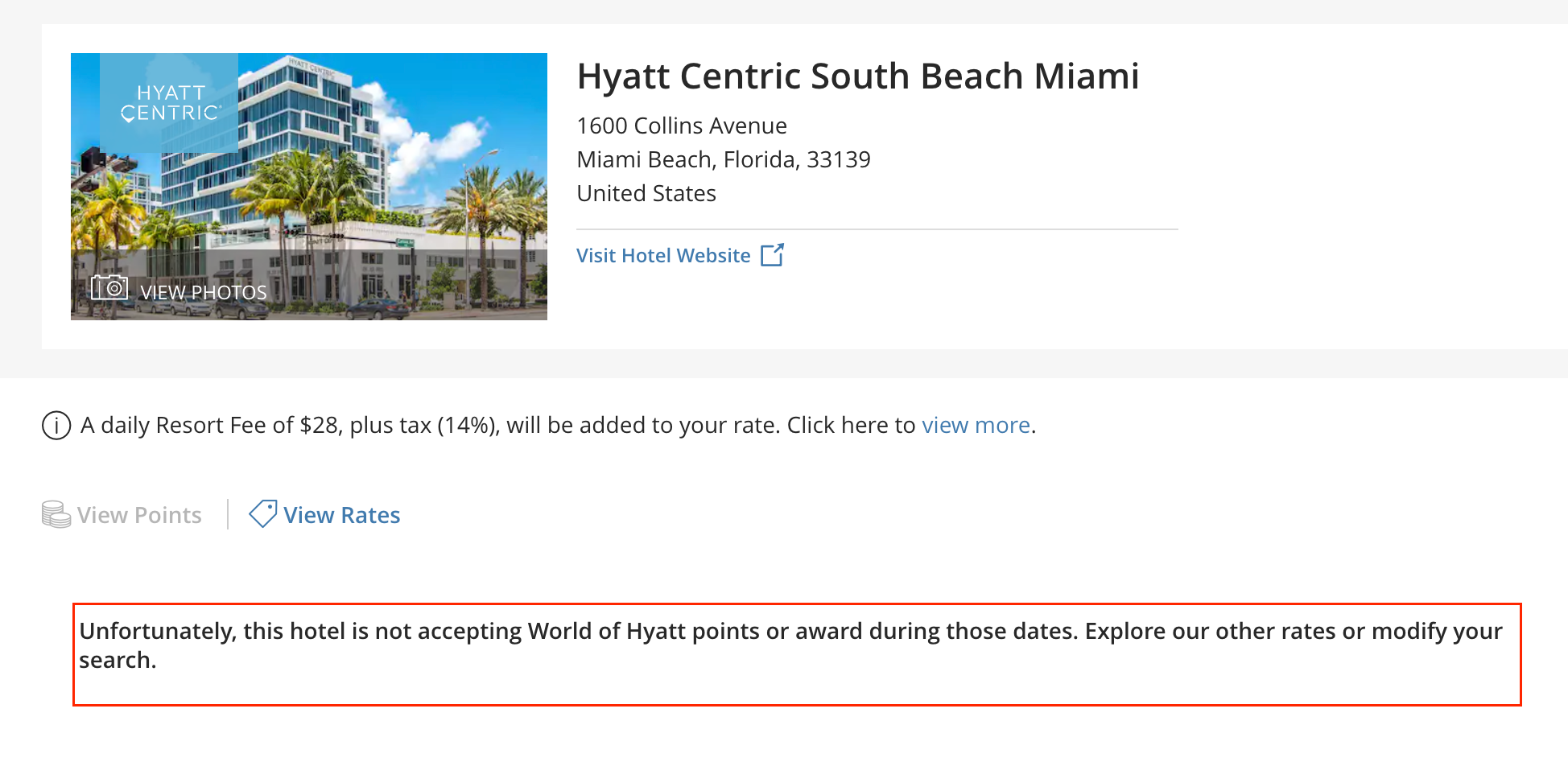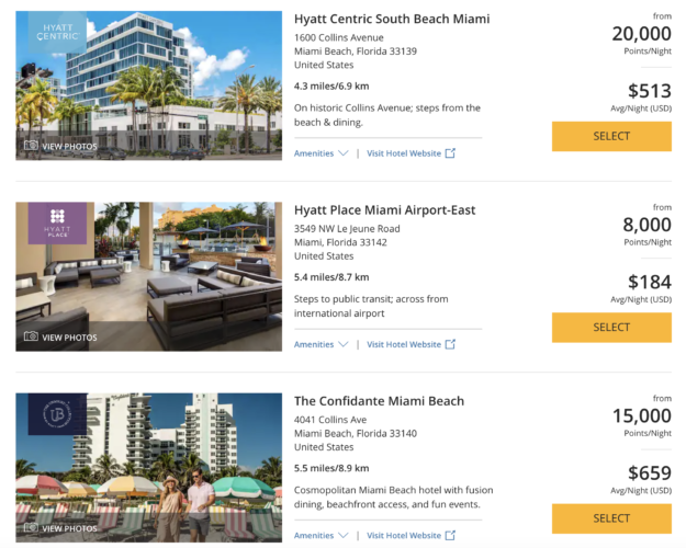 The above search results makes you think all of the properties have points availability for your specific date(s). However, you still have to click on each individual property to see whether that date actually has award space or not.