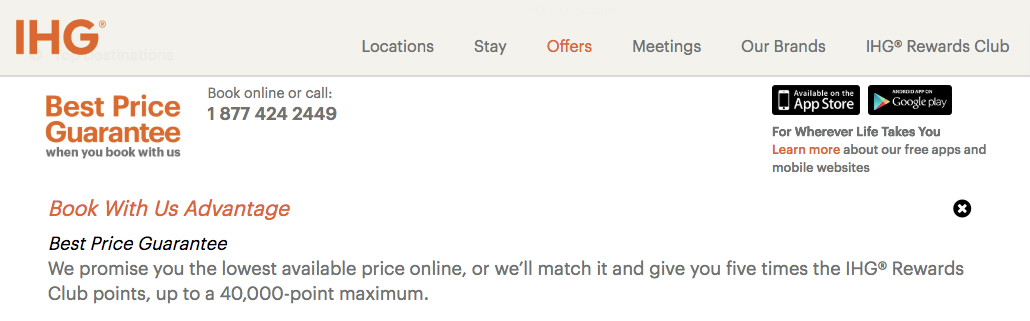 • IHG — "After researching, I was unable to validate your submission based on the Third party site being a "Deal of the Day" special offer, which does not apply to the Best Rate Guarantee program."
