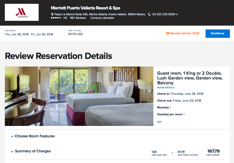 I'm not sure what Marriott has to do with anything, but since Great Wolf's Director of Communications brought it up, let's take a look at how Marriott handles resort fees on its website. Here's what the booking screen looks like for the Marriott Puerto Vallarta Resort & Spa, a property that charges a $15 per night resort fee: